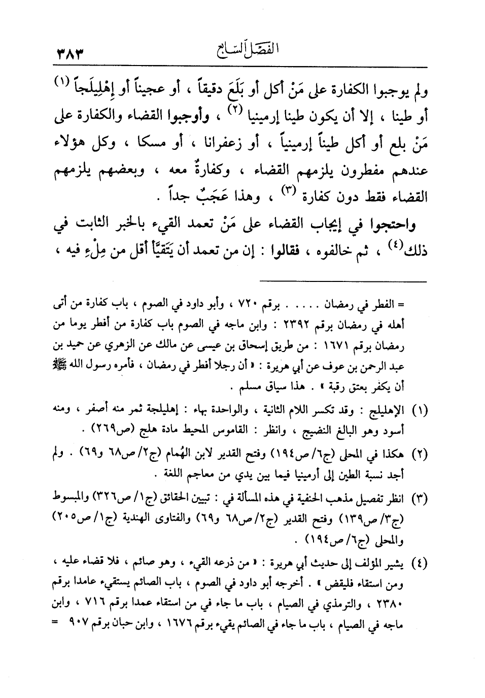 (¬٢) هكذا في المحلى (ج ٦/ ص ١٩٤) وفتح القدير لابن الهُمام (ج ٢/ ص ٦٨ و ٦٩). ولم أجد نسبة الطين إلى أرمينيا فيما بين يدي من معاجم اللغة.