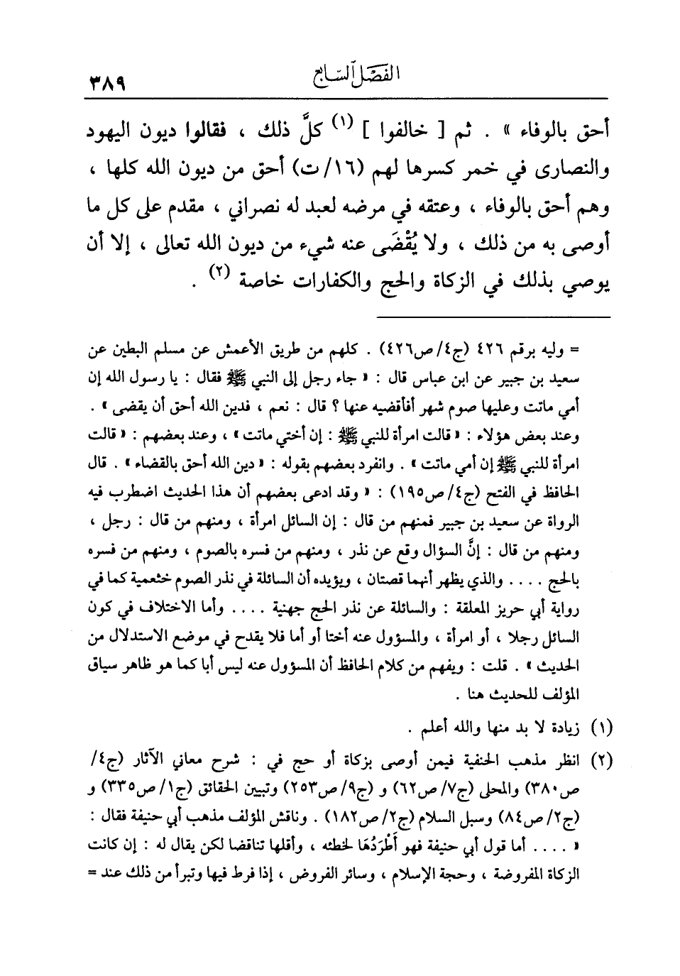 (¬٢) انظر مذهب الحنفية فيمن أوصى بزكاة أو حج في: شرح معاني الآثار (ج ٤/ ص ٣٨٠) والمحلى (ج ٧/ ص ٦٢) و (ج ٩/ ص ٢٥٣) وتبيين الحقائق (ج ١/ ص ٣٣٥) و (ج ٢/ ص ٨٤) وسبل السلام (ج ٢/ ص ١٨٢). وناقش المؤلف مذهب أبي حنيفة فقال: " .... أما قول أبي حنيفة فهو أَطْرَدُهَا لخطئه، وأقلها تناقضا لكن يقال له: إن كانت الزكاة المفروضة، وحجة الإسلام، وسائر الفروض، إذا فرط فيها وتبرأ من ذلك عند =