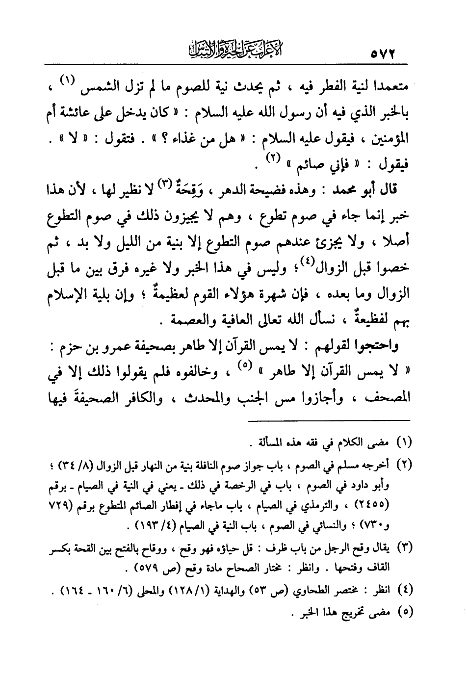 (¬٤) انظر: مختصر الطحاوي (ص ٥٣) والهداية (١/ ١٢٨) والمحلى (٦/ ١٦٠ - ١٦٤).