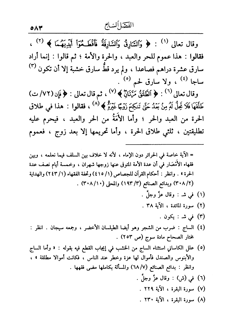 (¬٥) علل الكاساني استثناء الساج من الخشب في إيجاب القطع فيه بقوله: "وأما الساج والأبنوس والصندل فأموال لها عزة وخطر عند الناس، فكانت أموالا مطلقة"، وانظر: بدائع الصنائع (٧/ ٦٨) والمسألة بكاملها مضى فقهها.