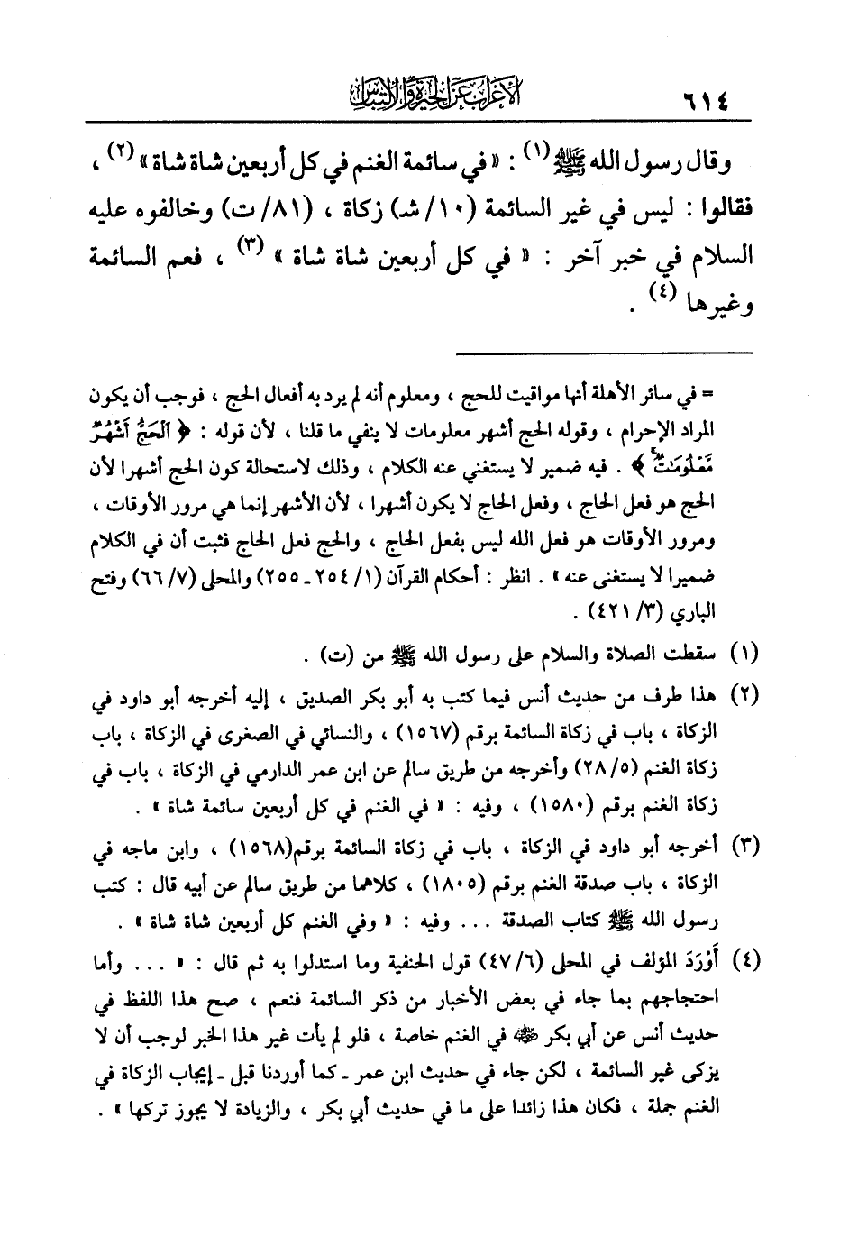(¬٣) أخرجه أبو داود في الزكاة، باب في زكاة السائمة برقم (١٥٦٨)، وابن ماجه في الزكاة، باب صدقة الغنم برقم (١٨٠٥)، كلاما من طريق سالم عن أبيه قال: كتب رسول الله - صلى الله عليه وسلم - كتاب الصدقة ... وفيه: "وفي الغنم كل أربعين شاة شاة".