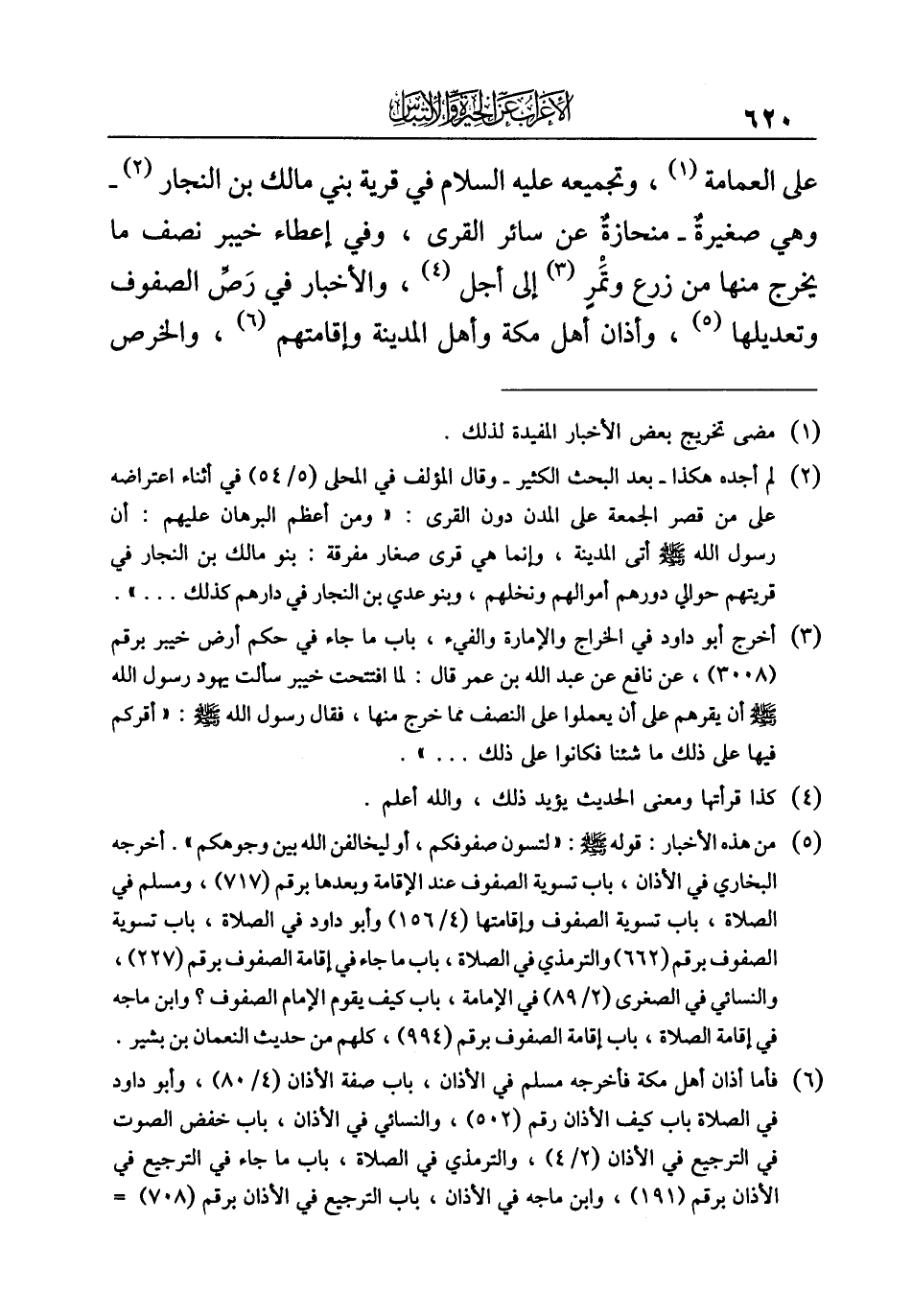 (¬٢) لم أجده هكذا - بعد البحث الكثير - وقال المؤلف في المحلى (٥/ ٥٤) في أثناء اعتراضه على من قصر الجمعة على المدن دون القرى: "ومن أعظم البرهان عليهم: أن رسول الله - صلى الله عليه وسلم - أتى المدينة، وإنما هي قرى صغار مفرقة: بنو مالك بن النجار في قريتهم حوالي دورهم أموالهم ونخلهم، وبنو عدي بن النجار في دارهم كذلك ... ".
