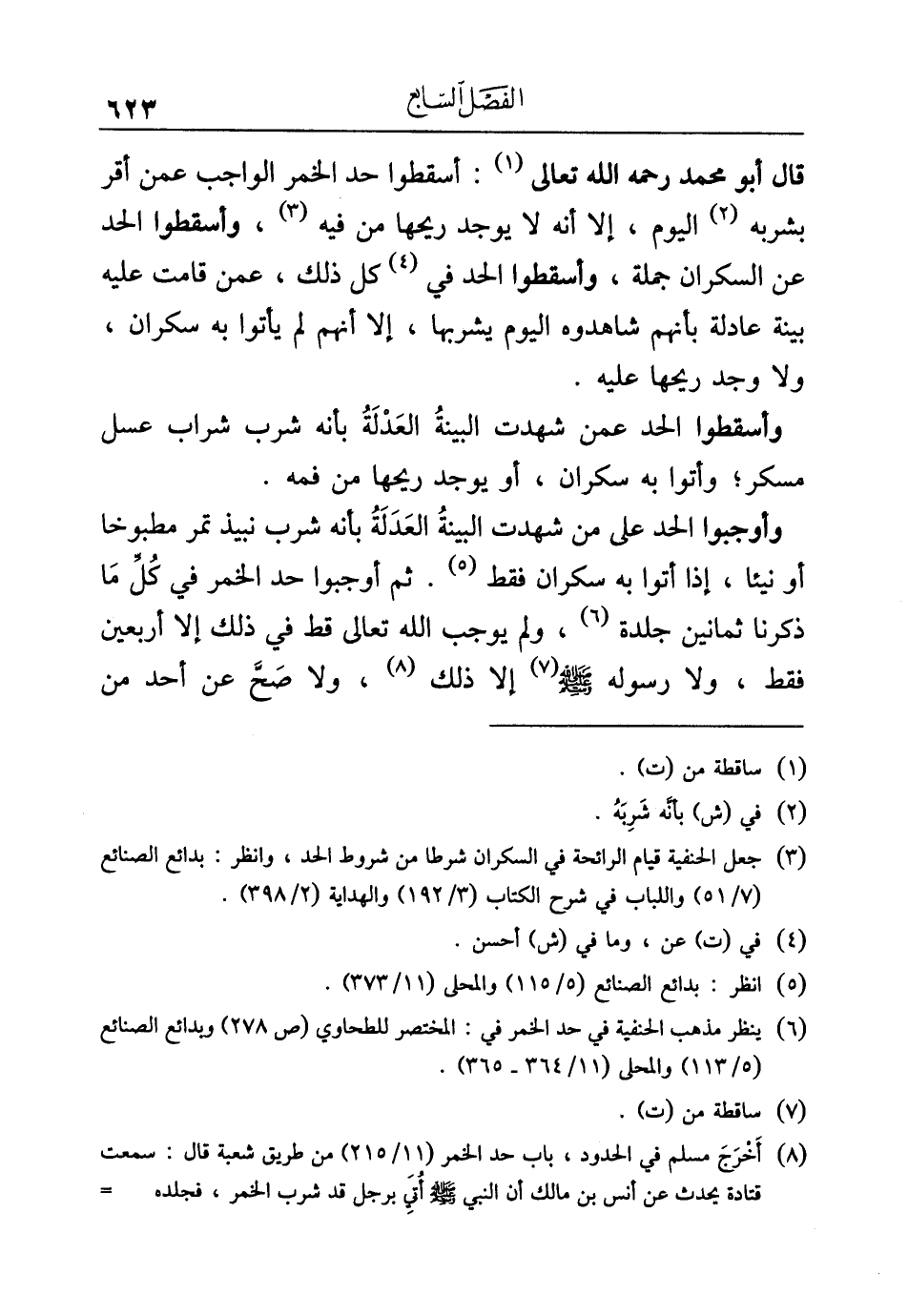 (¬٦) ينظر مذهب الحنفية في حد الخمر في: المختصر للطحاوي (ص ٢٧٨) وبدائع الصنائع (٥/ ١١٣) والمحلى (١١/ ٣٦٤ - ٣٦٥).