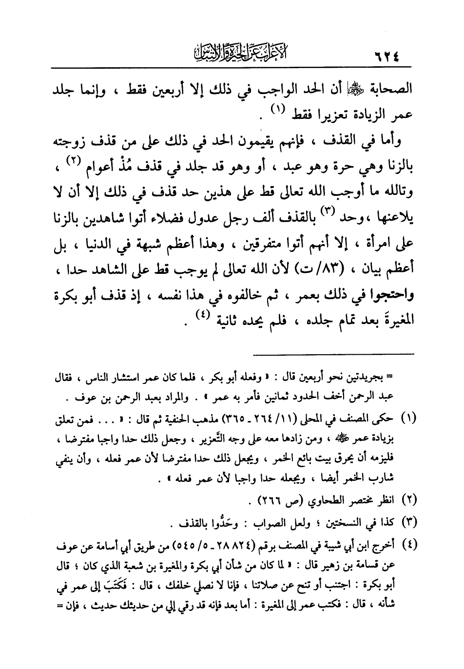 (¬١) حكى المصنف في المحلى (١١/ ٢٦٤ - ٣٦٥) مذهب الحنفية ثم قال: " ... فمن تعلق بزيادة عمر - رضي الله عنه -، ومن زادها معه على وجه التَّعزير، وجعل ذلك حدا واجبا مفترضا، فليزمه أن يحرق بيت بائع الخمر، ويجعل ذلك حدا مفترضا لأن عمر فعله، وأن ينفي شارب الخمر أيضا، ويجعله حدا واجبا لأن عمر فعله".