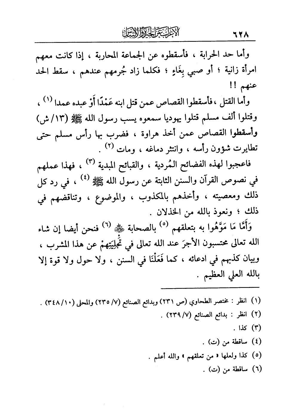 (¬١) انظر: مختصر الطحاوي (ص ٢٣١) وبدائع الصنائع (٧/ ٢٣٥) والمحلى (١٠/ ٣٤٨).