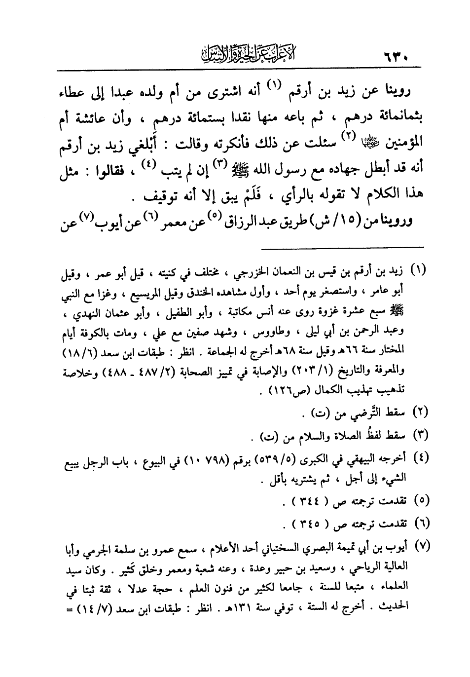 (¬١) زيد بن أرقم بن قيس بن النعمان الخزرجي، مختلف في كنيته، قيل أبو عمر، وقيل أبو عامر، واستصغر يوم أحد، وأول مشاهده الخندق وقيل المريسيع، وغزا مع النبي - صلى الله عليه وسلم - سبع عشرة غزوة روى عنه أنس مكاتبة، وأبو الطفيل، وأبو عثمان النهدي، وعبد الرحمن بن أبي ليلى، وطاووس، وشهد صفين مع علي، ومات بالكوفة أيام المختار سنة ٦٦ هـ وقيل سنة ٦٨ هـ أخرج له الجماعة. انظر: طبقات ابن سعد (٦/ ١٨) والمعرفة والتاريخ (١/ ٢٠٣) والإصابة في تمييز الصحابة (٢/ ٤٨٧ - ٤٨٨) وخلاصة تذهيب تهذيب الكمال (ص ١٢٦).