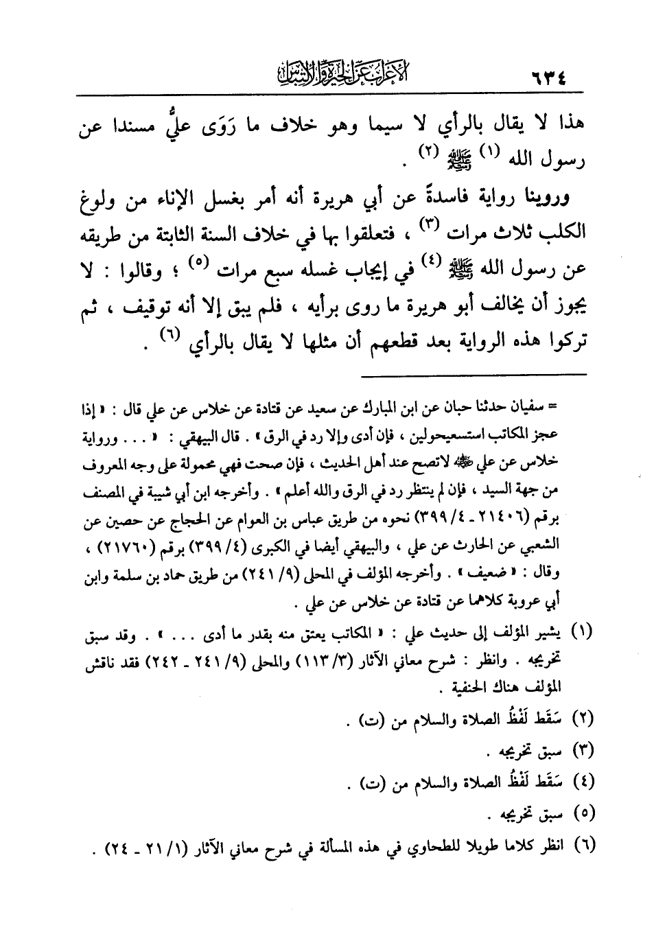 (¬٦) انظر كلاما طويلا للطحاوي في هذه المسألة في شرح معاني الآثار (١/ ٢١ - ٢٤).