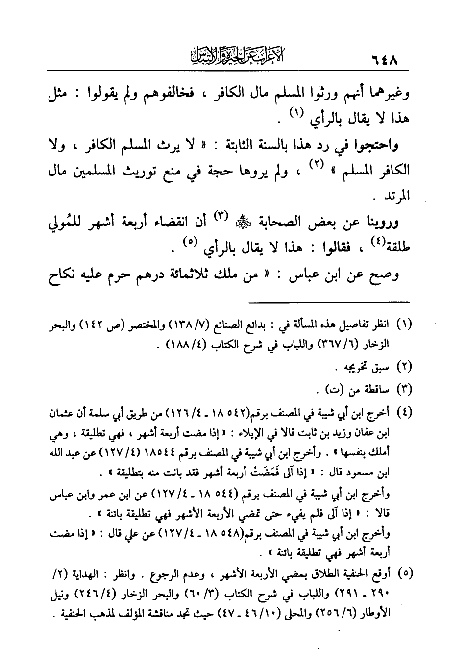 (¬١) انظر تفاصيل هذه المسألة في: بدائع الصنائع (٧/ ١٣٨) والمختصر (ص ١٤٢) والبحر الزخار (٦/ ٣٦٧) واللباب في شرح الكتاب (٤/ ١٨٨).