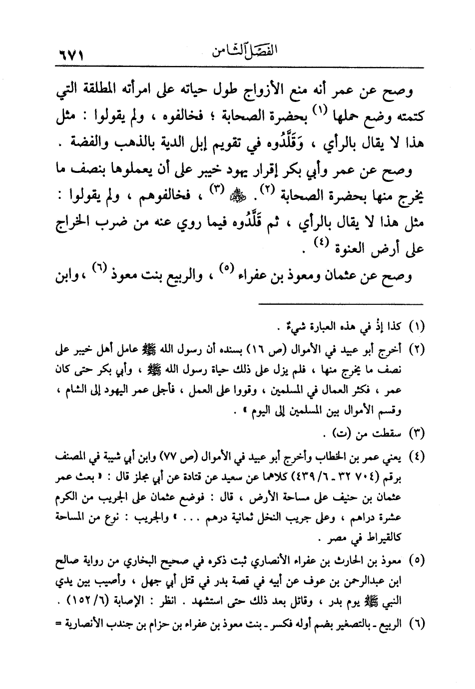 (¬٢) أخرج أبو عبيد في الأموال (ص ١٦) بسنده أن رسول الله - صلى الله عليه وسلم - عامل أهل خيبر على نصف ما يخرج منها، فلم يزل على ذلك حياة رسول الله - صلى الله عليه وسلم -، وأبي بكر حتى كان عمر، فكثر العمال في المسلمين، وقووا على العمل، فأجلى عمر اليهود إلى الشام، وقسم الأموال بين المسلمين إلى اليوم".