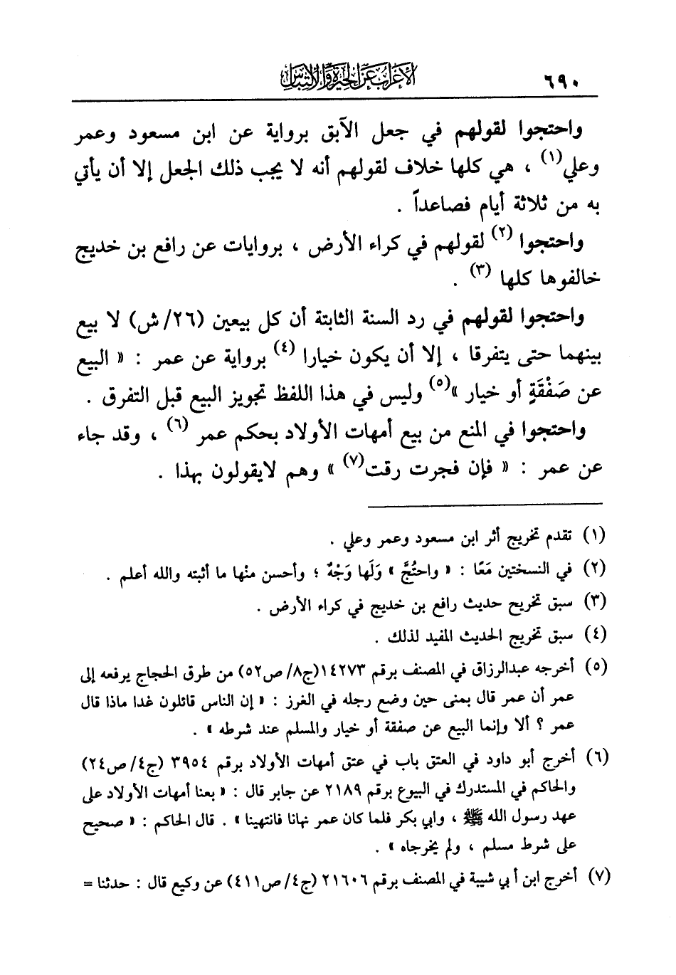 (¬٦) أخرج أبو داود في العتق باب في عتق أمهات الأولاد برقم ٣٩٥٤ (ج ٤/ ص ٢٤) والحاكم في المستدرك في البيوع برقم ٢١٨٩ عن جابر قال: "بعنا أمهات الأولاد على عهد رسول الله - صلى الله عليه وسلم -، وأبي بكر فلما كان عمر نهانا فانتهينا". قال الحاكم: "صحيح على شرط مسلم، ولم يخرجاه".