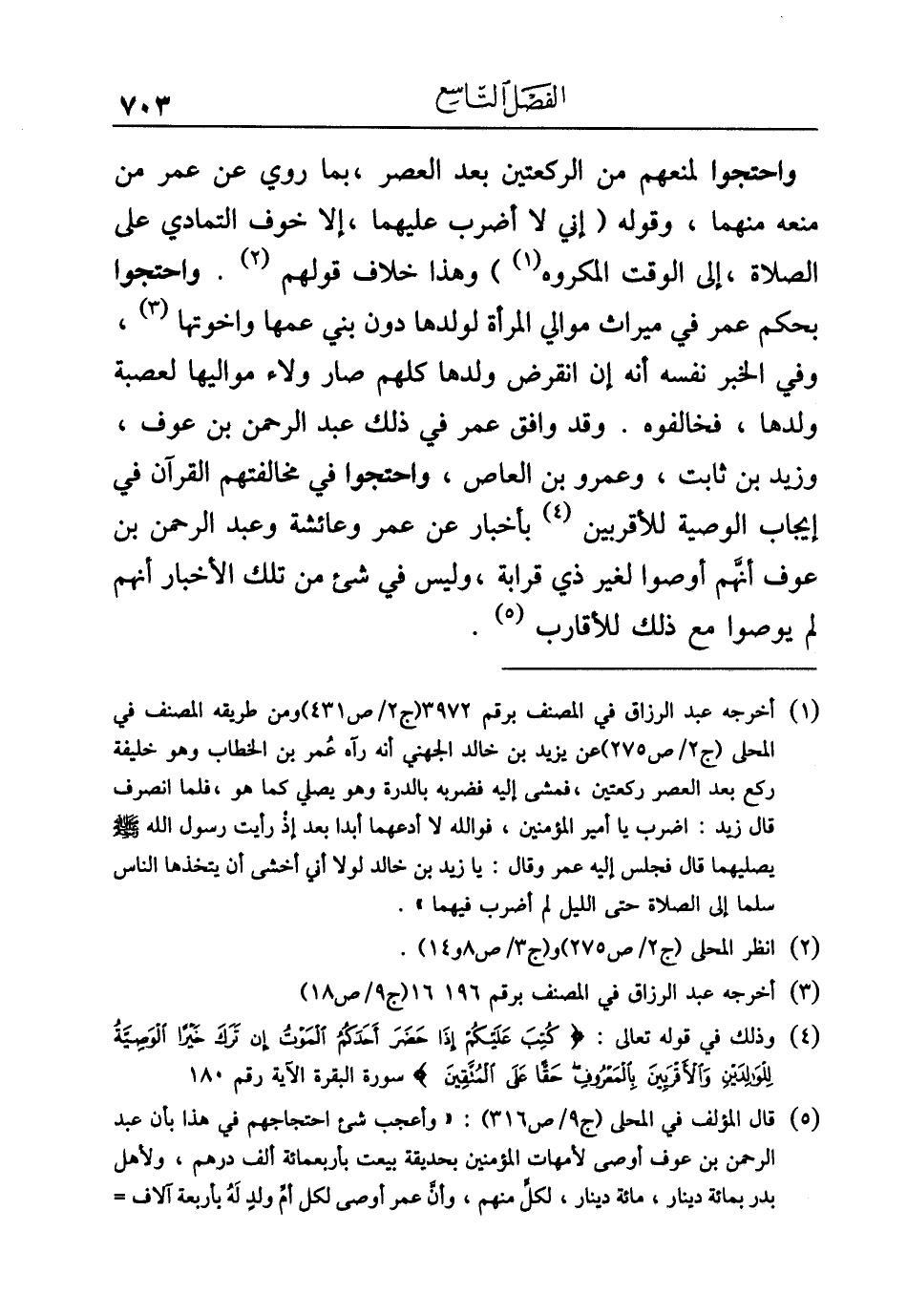 (¬٥) قال المؤلف في المحلى (ج ٩/ ص ٣١٦): "وأعجب شيء احتجهاجهم في هذا بأن عبد الرحمن بن عوف أوصى لأمهات المؤمنين بحديقة بيعت بأربعمائة ألف درهم، ولأهل بدر بمائة دينار، مائة دينار، لكلٍّ منهم، وأنَّ عمر أوصى لكل أمِّ ولدٍ لَهُ بأربعة آلاف =