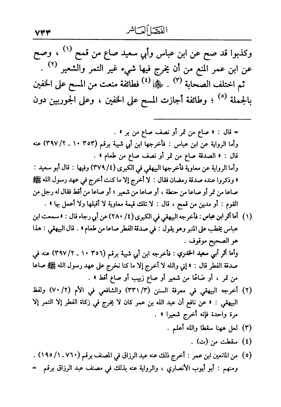 وأما الرواية عن ابن عباس: فأخرجها ابن أبي شيبة برقم (١٠٣٥٣ - ٢/ ٣٩٧) عنه قال: "الصدقة صاع من تمر أو نصف صاع من طعام".