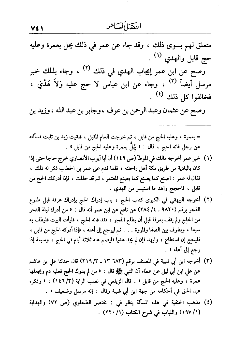 (¬١) خبر عمر أخرجه مالك في الموطأ (ص ١٤٩) أن أبا أيوب الأنصاري خرج حاجا حتى إذا كان بالبادية من طريق مكة أهل راحلته؛ فلما قدم على عمر بن الخطاب ذكر له ذلك، فقال له عمر: اصنع كما يصنع المعتمر، ثم قد حللت، فإذا أدركك الحج من قابل، فاحجج واهد ما استيسر من الهدي.