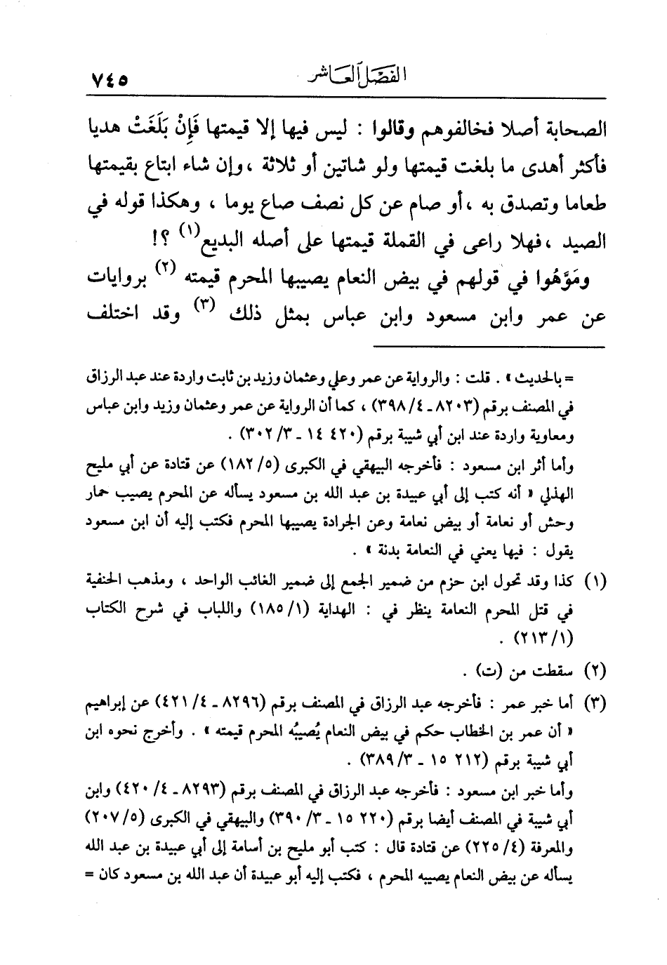 (¬١) كذا وقد تحول ابن حزم من ضمير الجمع إلى ضمير الغائب الواحد، ومذهب الحنفية في قتل المحرم النعامة ينظر في: الهداية (١/ ١٨٥) واللباب في شرح الكتاب (١/ ٢١٣).