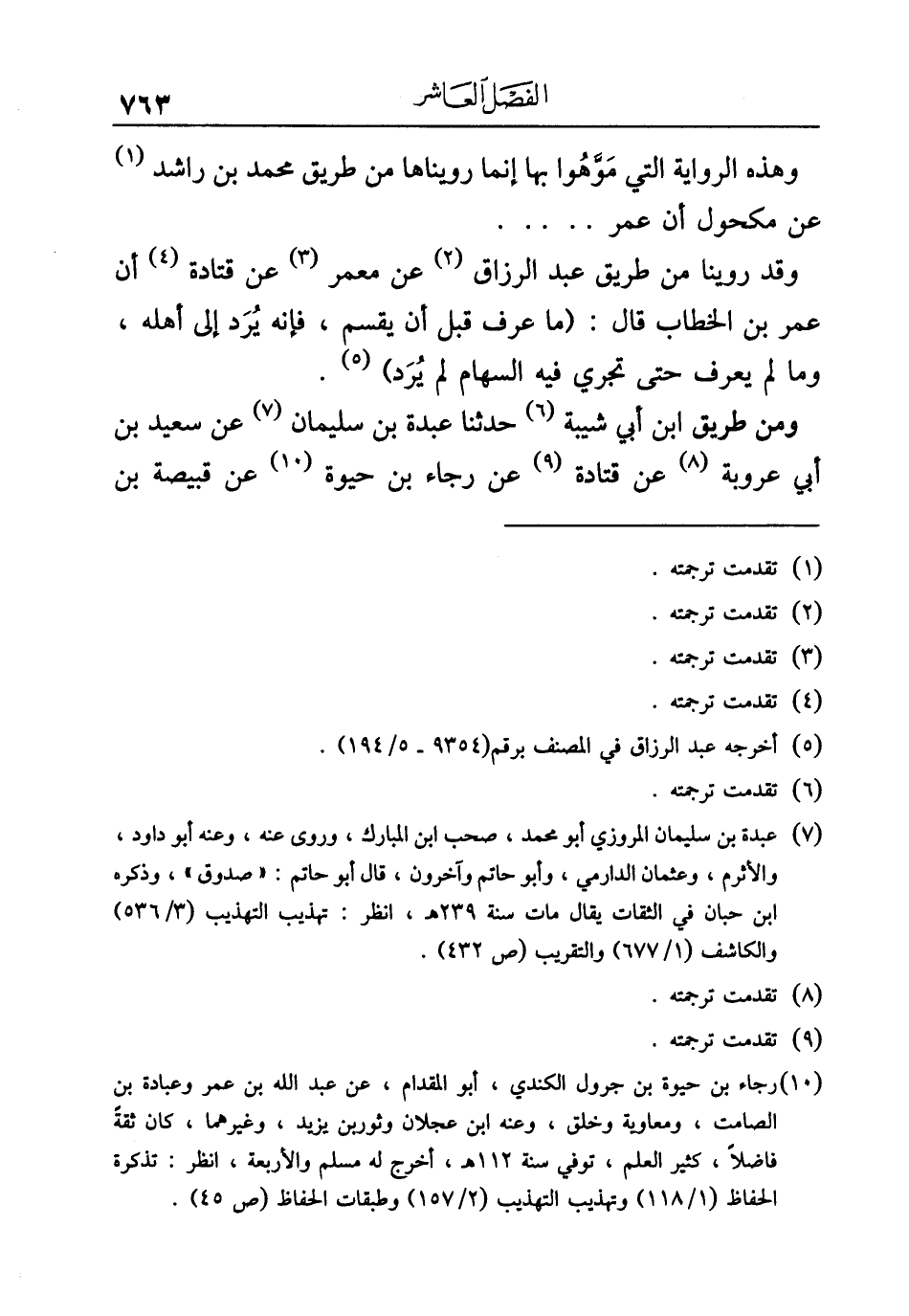 (¬١٠) رجاء بن حيوة بن جرول الكندي، أبو المقدام، عن عبد الله بن عمر وعبادة بن الصامت، ومعاوية وخلق، وعنه ابن عجلان وثور بن يزيد، وغيرهما، كان ثقةً فاضلًا، كثير العلم، توفي سنة ١١٢ هـ، أخرج له مسلم والأربعة، انظر: تذكرة الحفاظ (١/ ١١٨) وتهذيب التهذيب (٢/ ١٥٧) وطبقات الحفاظ (ص ٤٥).