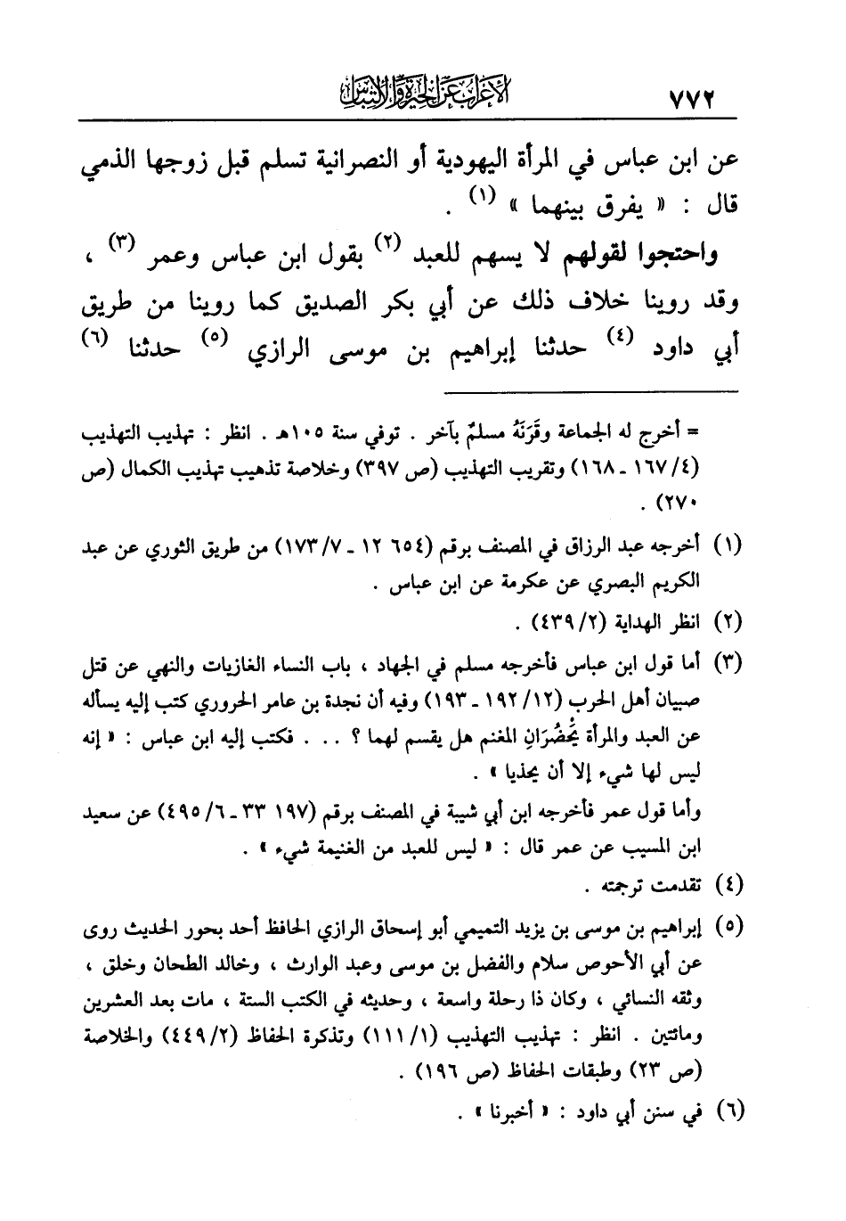 واحتجوا لقولهم لا يسهم للعبد (¬٢) بقول ابن عباس وعمر (¬٣)، وقد روينا خلاف ذلك عن أبي بكر الصديق كما روينا من طريق أبي داود (¬٤) حدثنا إبراهيم بن موسى الرازي (¬٥) حدثنا (¬٦)