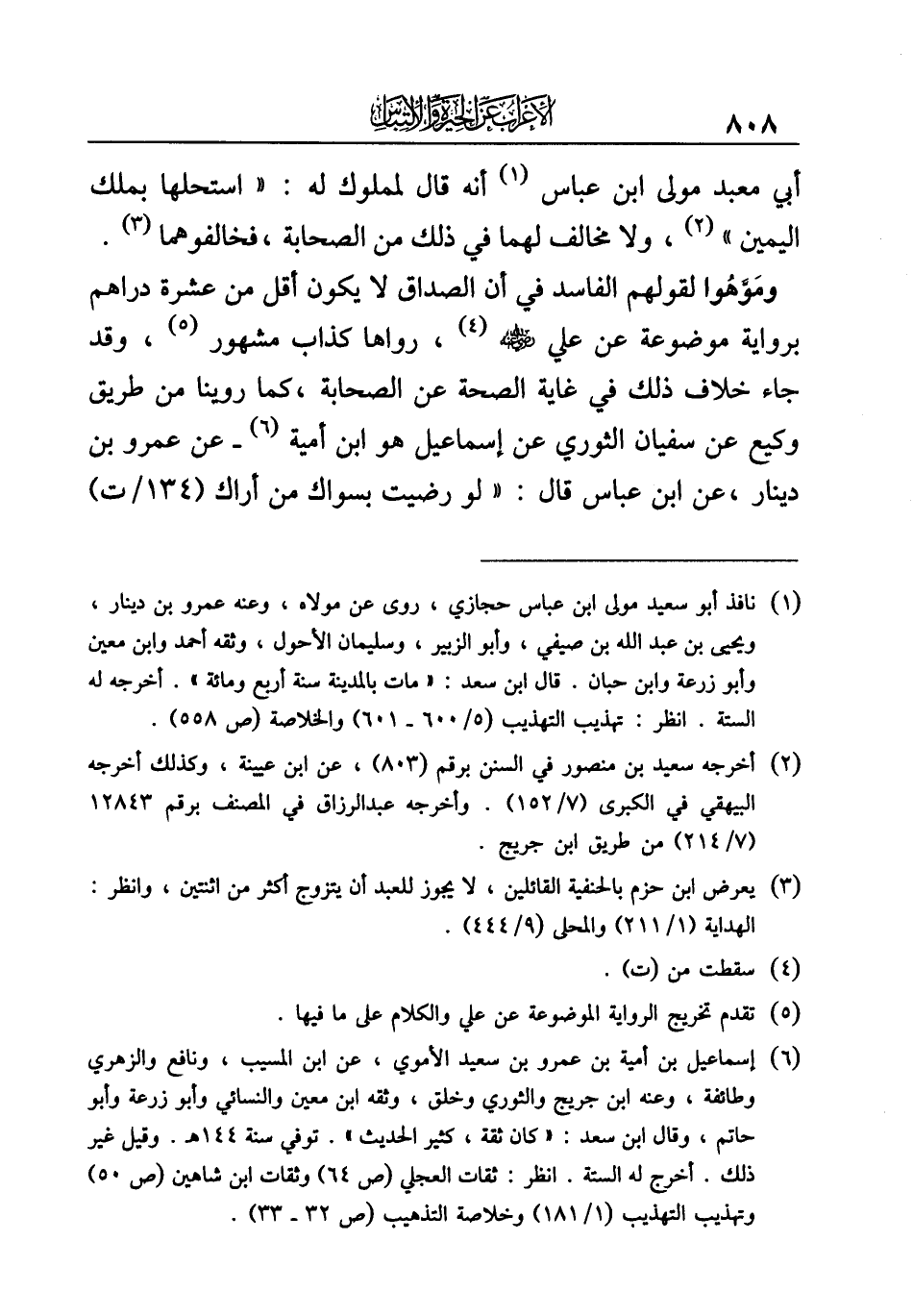 ومَوَّهُوا لقولهم الفاسد في أن الصداق لا يكون أقل من عشرة دراهم برواية موضوعة عن علي - رضي الله عنه - (¬٤)، رواها كذاب مشهور (¬٥)، وقد جاء خلاف ذلك في غاية الصحة عن الصحابة، كما روينا من طريق وكيع عن سفيان الثوري عن إسماعيل هو ابن أمية (¬٦) - عن عمرو بن دينار، عن ابن عباس قال: "لو رضيت بسواك من أراك