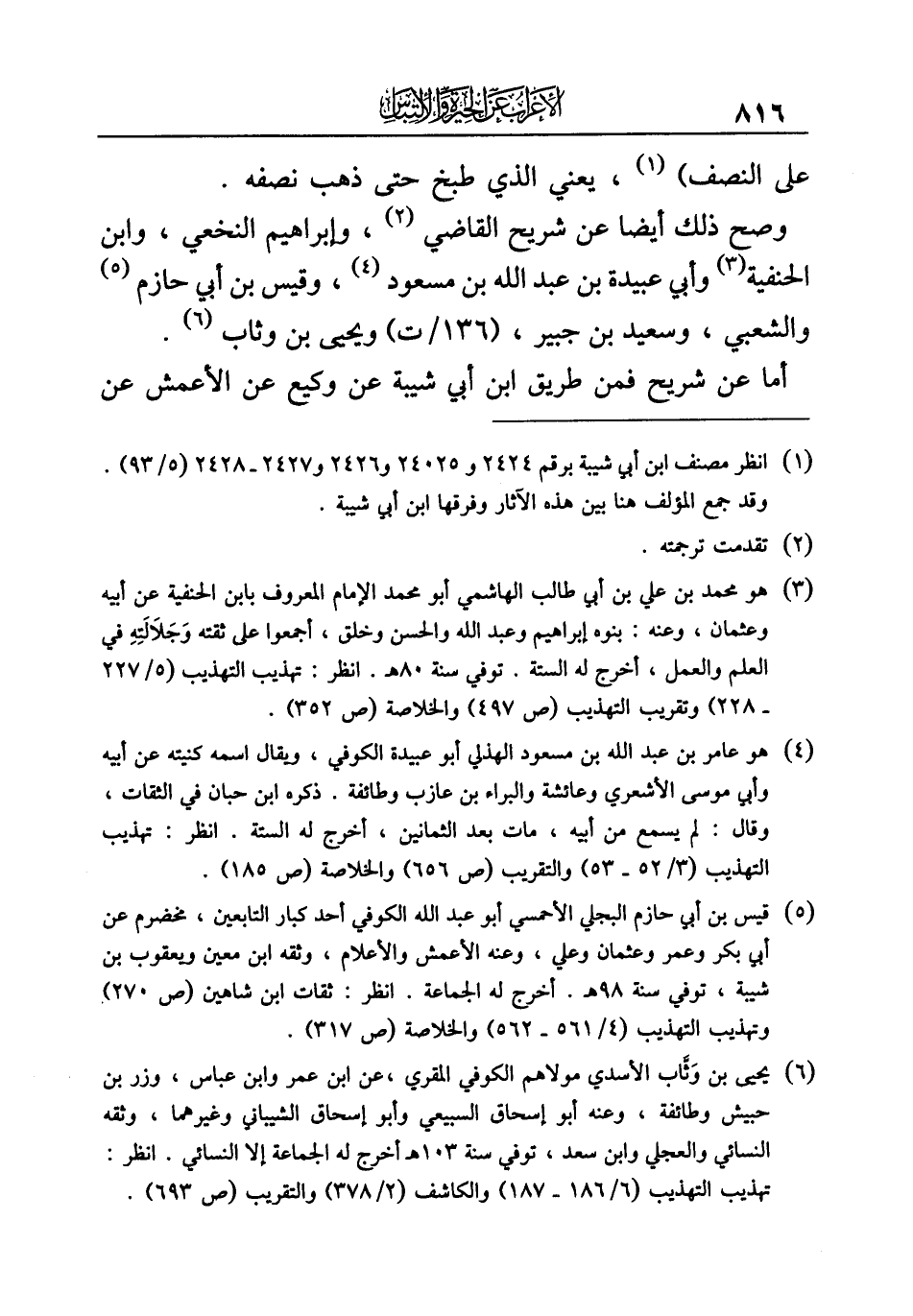 وصح ذلك أيضا عن شريح القاضي (¬٢)، وإبراهيم النخعي، وابن الحنفية (¬٣) وأبي عبيدة بن عبد الله بن مسعود (¬٤)، وقيس بن أبي حازم (¬٥) والشعبي، وسعيد بن جبير، ويحيى بن وثاب (¬٦).