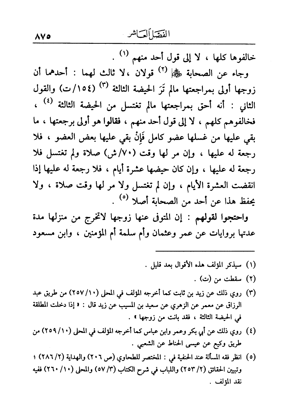 (¬٥) انظر فقه المسألة عند الحنفية في: المختصر للطحاوي (ص ٢٠٦) والهداية (٢/ ٢٨٦)؛ وتبيين الحقائق (٢/ ٢٥٣) واللباب في شرح الكتاب (٣/ ٥٧) والمحلى (١٠/ ٢٦٠) ففيه نقد المؤلف.