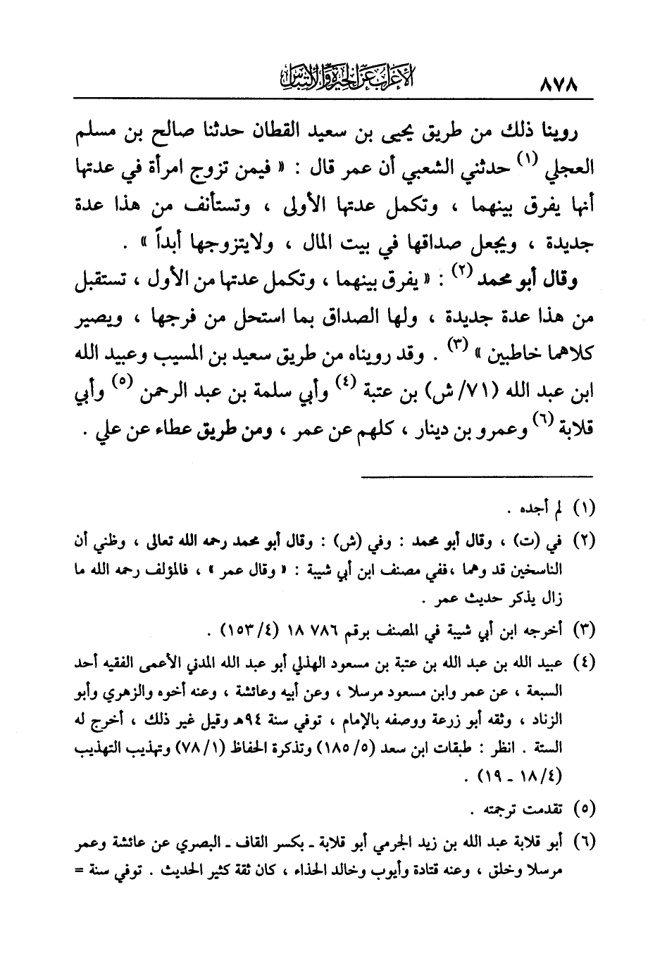 (¬٢) في (ت)، وقال أبو محمد: وفي (ش): وقال أبو محمد رحمه الله تعالى، وظني أن الناسخين قد وهما، ففي مصنف ابن أبي شيبة: "وقال عمر"، فالمؤلف رحمه الله ما زال يذكر حديث عمر.