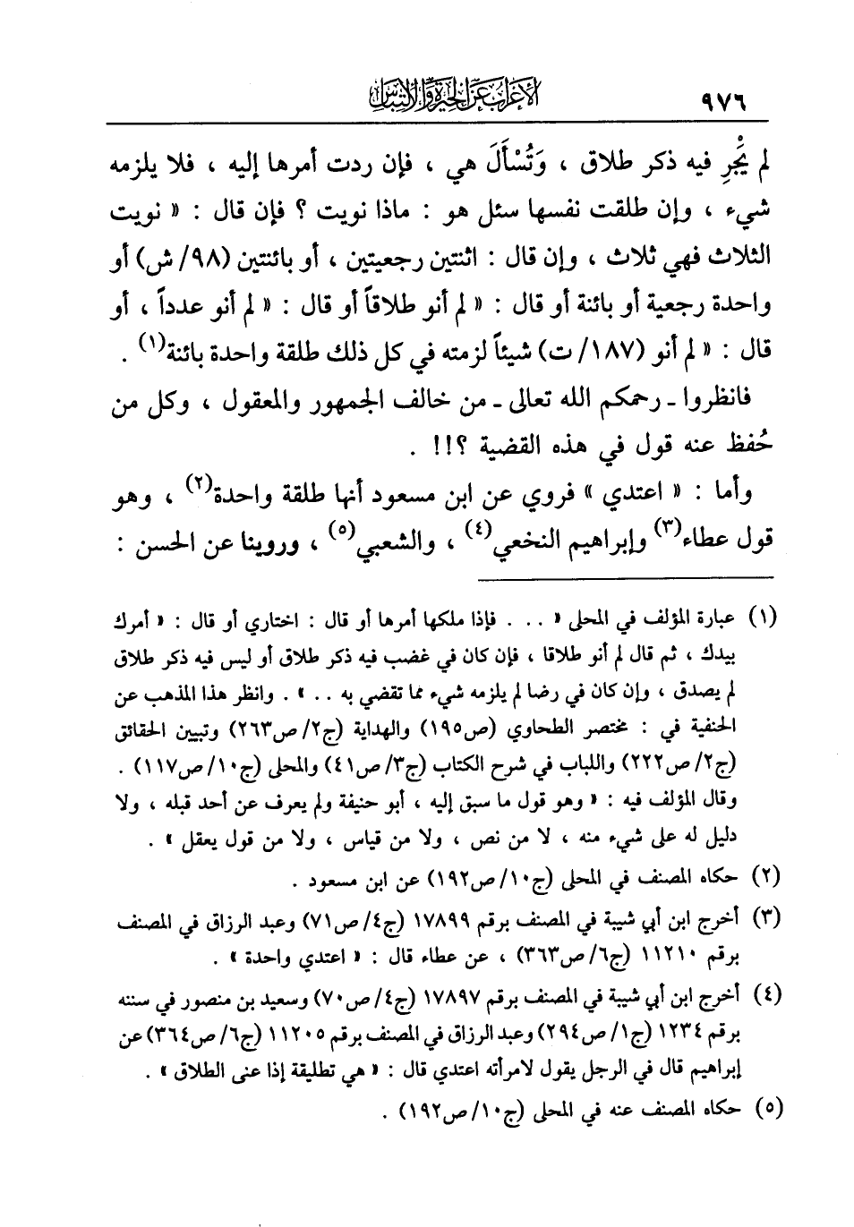 (¬٤) أخرج ابن أبي شيبة في المصنف برقم ١٧٨٩٧ (ج ٤/ ص ٧٠) وسعيد بن منصور في سنته برقم ١٢٣٤ (ج ١/ ص ٢٩٤) وعبد الرزاق في المصنف برقم ١١٢٠٥ (ج ٦/ ص ٣٦٤) عن إبراهيم قال في الرجل يقول لامرأته اعتدي قال: "هي تطليقة إذا عنى الطلاق".
