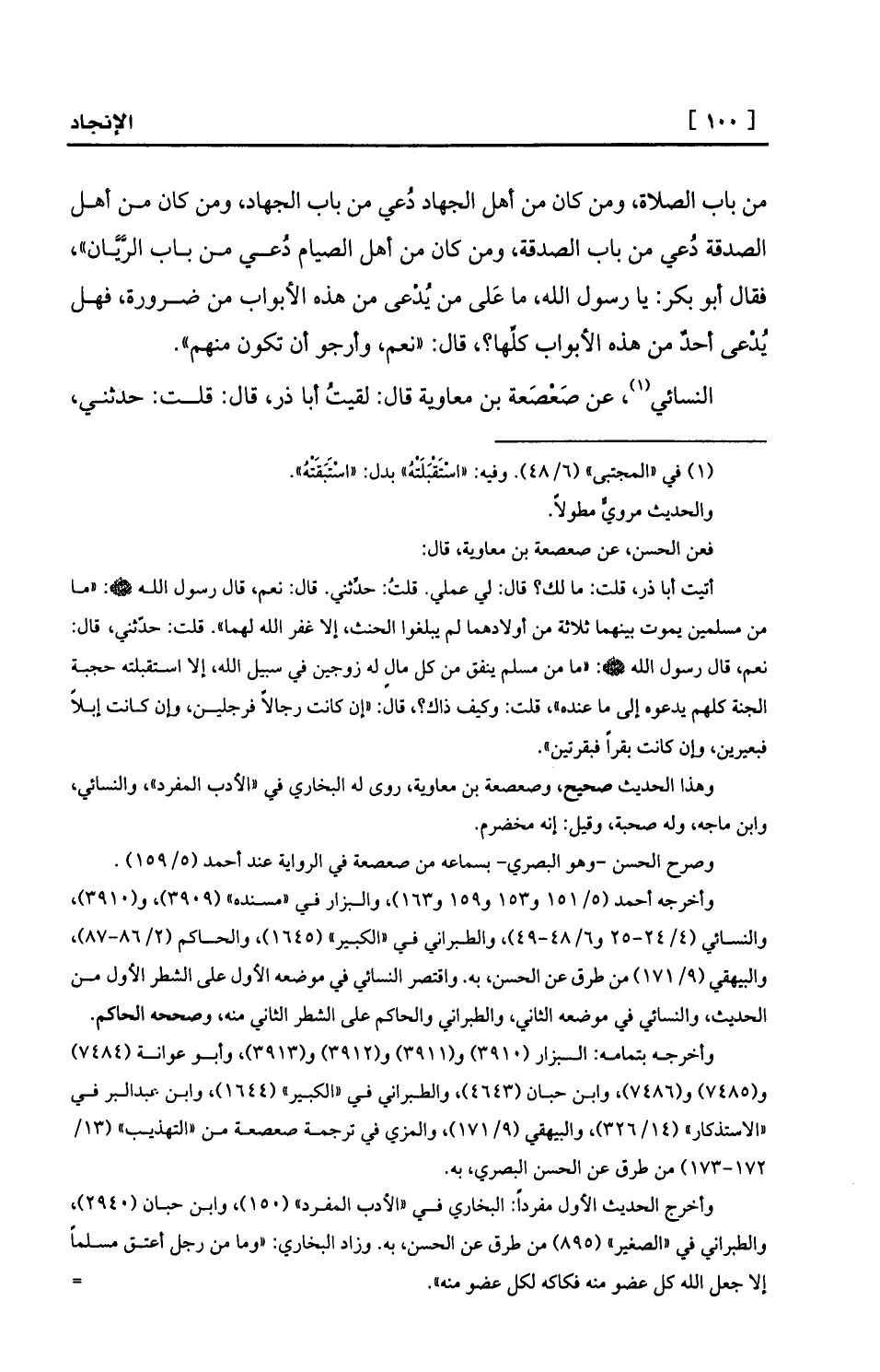 النسائي (¬1) ، عن صَعْصَعة بن معاوية قال: لقيتُ أبا ذر، قال: قلت: حدثني،