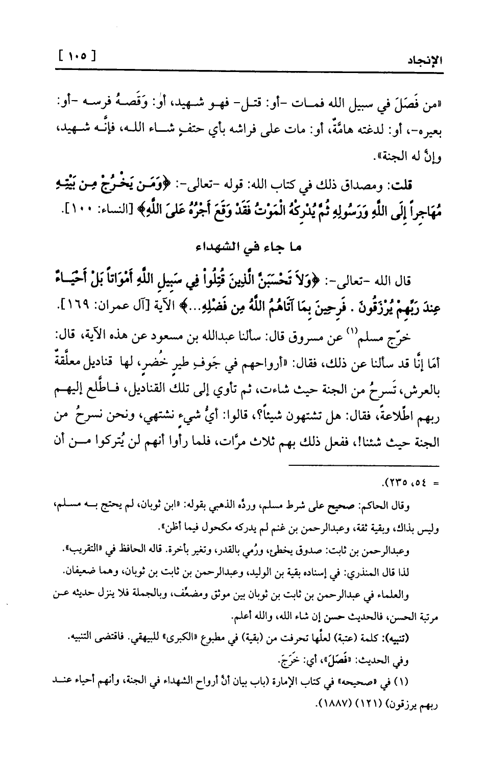 (¬1) في «صحيحه» في كتاب الإمارة (باب بيان أنَّ أرواح الشهداء في الجنة، وأنهم أحياء عند ربهم يرزقون) (121) (1887) .