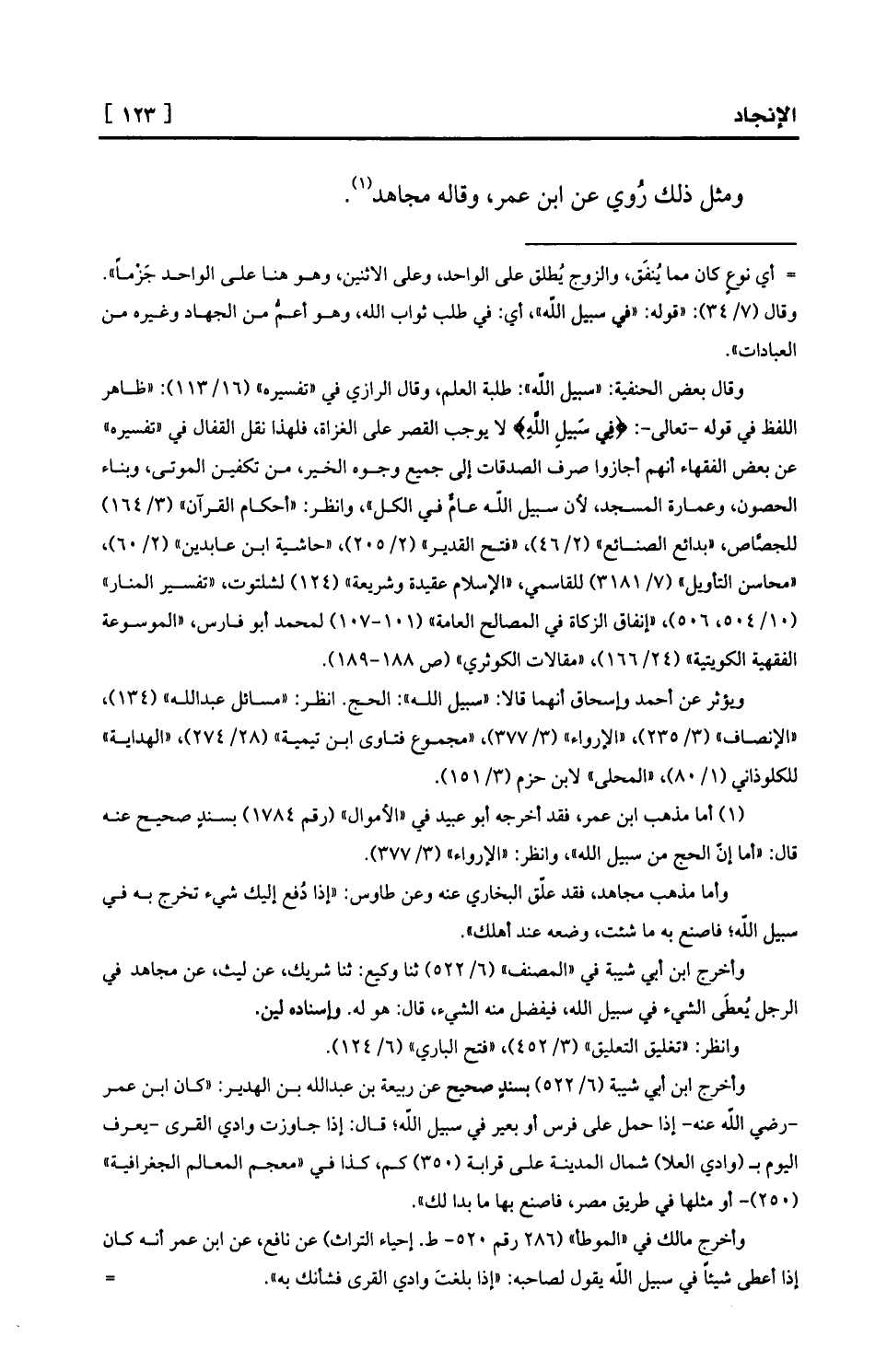 (¬1) أما مذهب ابن عمر، فقد أخرجه أبو عبيد في «الأموال» (رقم 1784) بسندٍ صحيح عنه قال: «أما إنّ الحج من سبيل الله» ، وانظر: «الإرواء» (3/377) .
