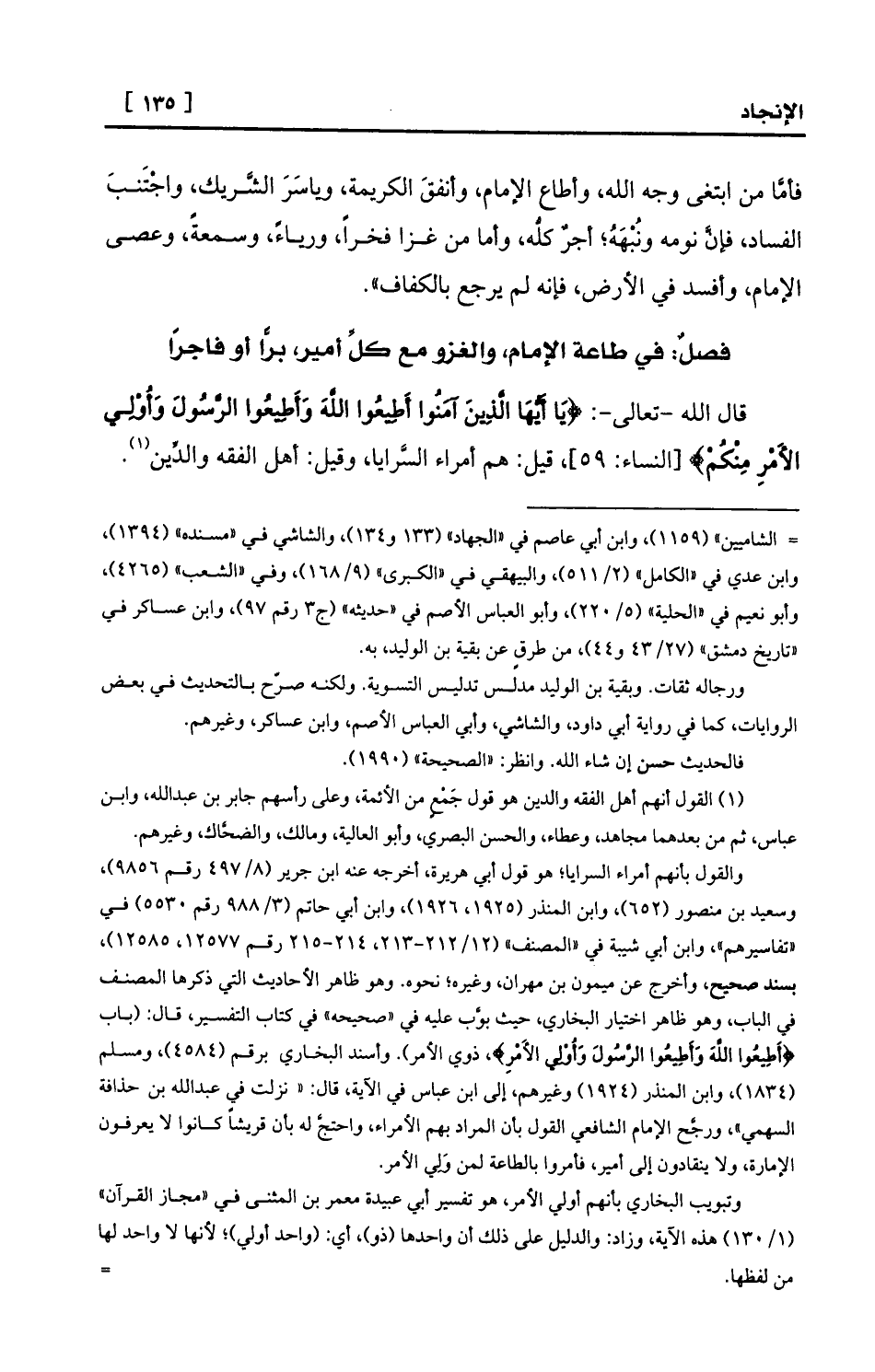 قال الله -تعالى-: {يَا أَيُّهَا الَّذِينَ آمَنُوا أَطِيعُوا اللَّهَ وَأَطِيعُوا الرَّسُولَ وَأُوْلِي الأَمْرِ مِنْكُمْ} [النساء: 59] ، قيل: هم أمراء السَّرايا، وقيل: أهل الفقه والدِّين (¬1) .