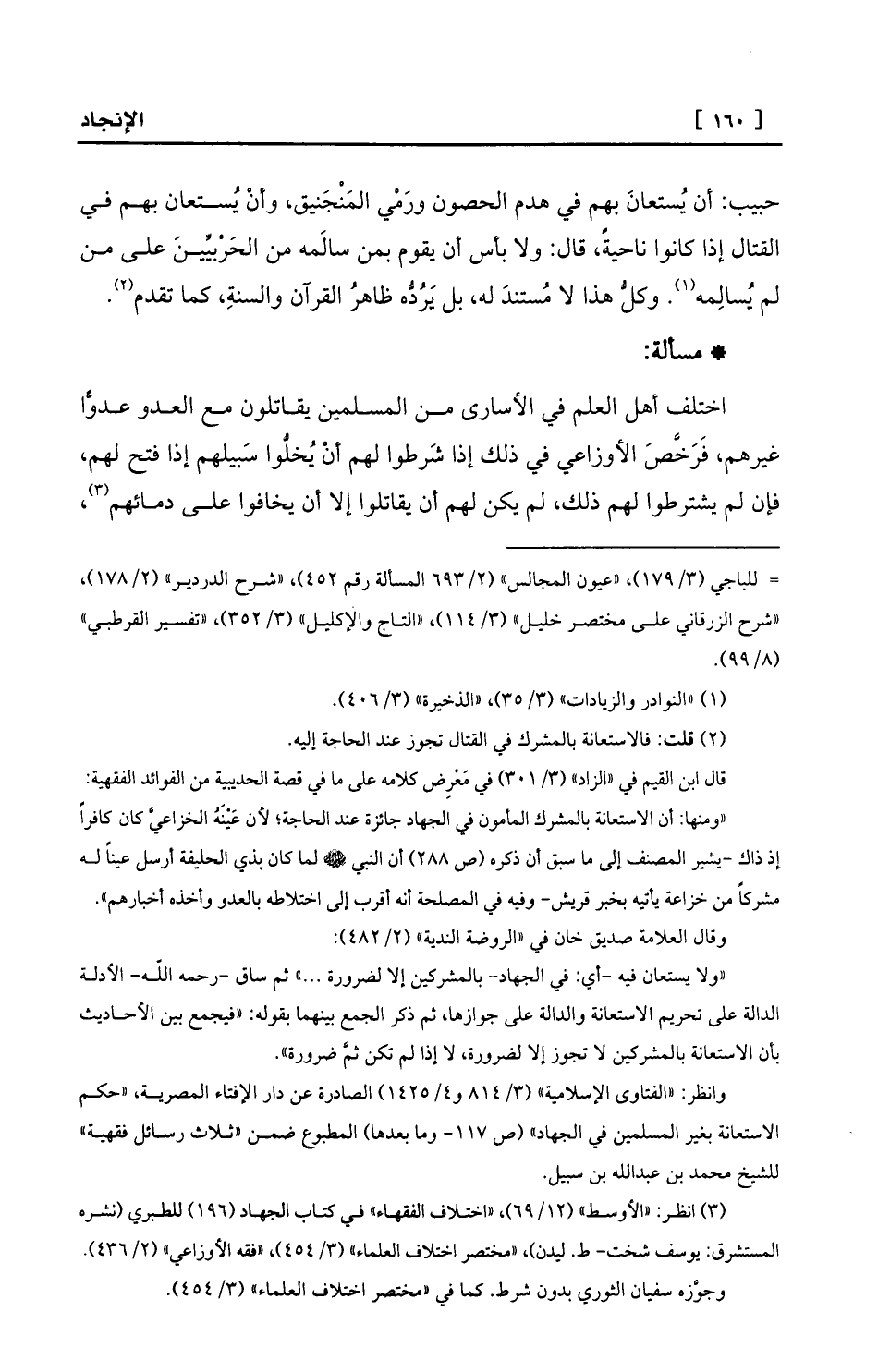 (¬3) انظر: «الأوسط» (12/69) ، «اختلاف الفقهاء» في كتاب الجهاد (196) للطبري (نشره المستشرق: يوسف شخت- ط. ليدن) ، «مختصر اختلاف العلماء» (3/454) ، «فقه الأوزاعي» (2/436) .