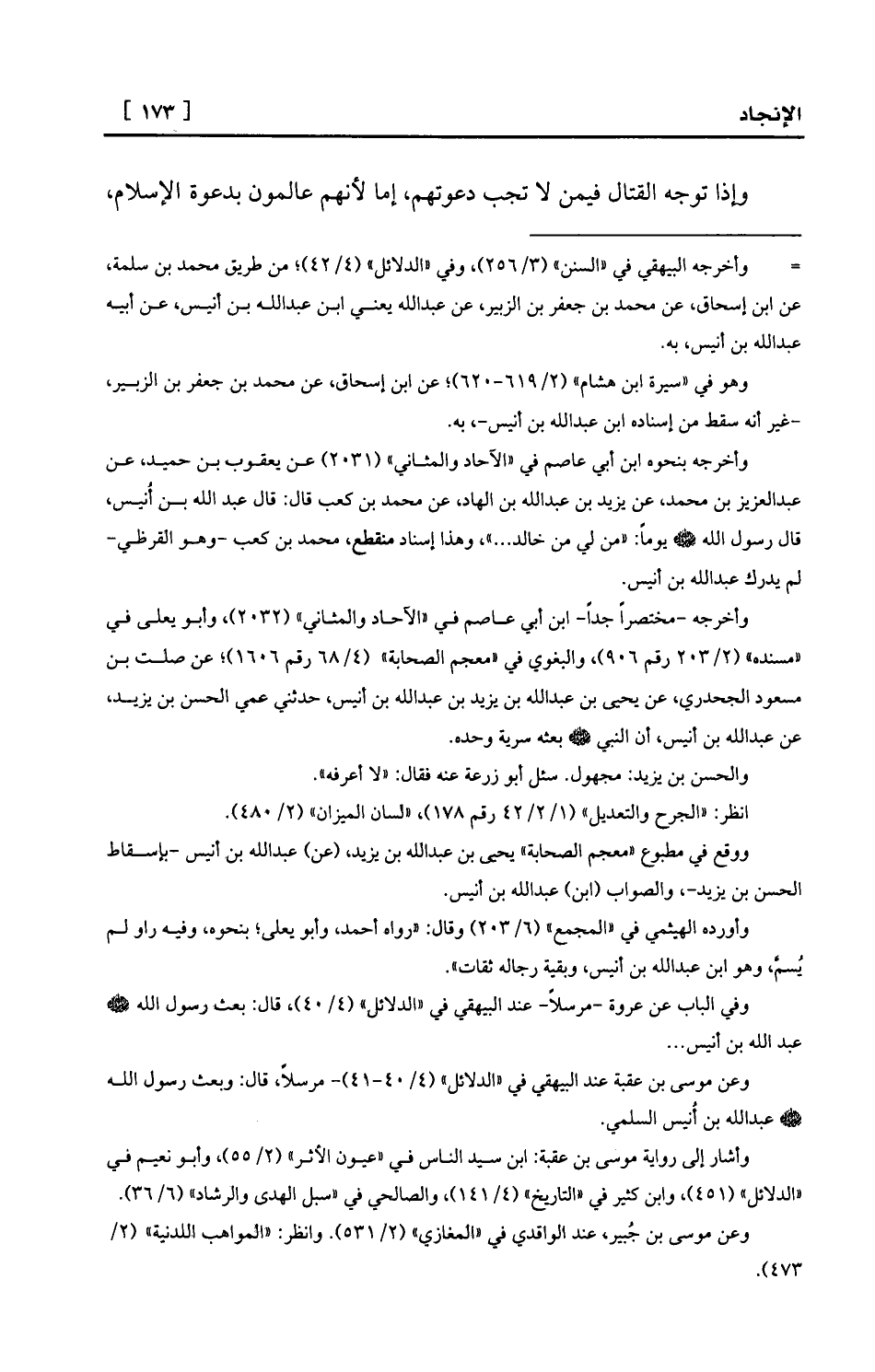 = وأخرجه البيهقي في «السنن» (3/256) ، وفي «الدلائل» (4/42) ؛ من طريق محمد بن سلمة، عن ابن إسحاق، عن محمد بن جعفر بن الزبير، عن عبد الله يعني ابن عبد الله بن أنيس، عن أبيه عبد الله بن أنيس، به.
