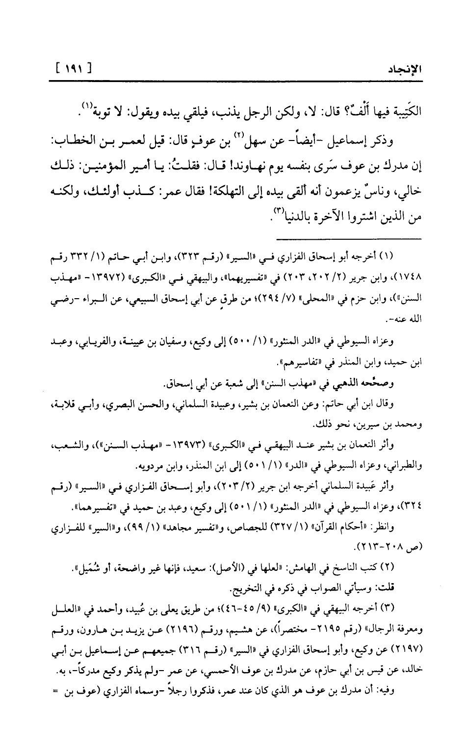 (¬1) أخرجه أبو إسحاق الفزاري في «السير» (رقم 323) ، وابن أبي حاتم (1/332 رقم 1748) ، وابن جرير (2/202، 203) في «تفسيريهما» ، والبيهقي في «الكبرى» (13972- «مهذب السنن» ) ، وابن حزم في «المحلى» (7/294) ؛ من طرقٍ عن أبي إسحاق السبيعي، عن البراء -رضي الله عنه-.