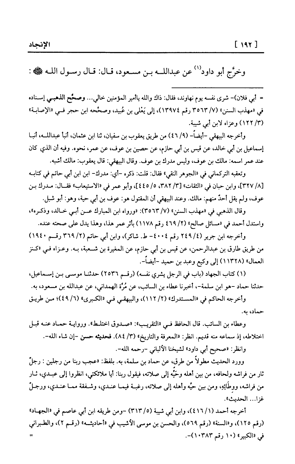 (¬1) كتاب الجهاد (باب في الرجل يشري نفسه) (رقم 2536) حدثنا موسى بن إسماعيل، حدثنا حماد -هو ابن سلمة-، أخبرنا عطاء بن السائب، عن مُرَّة الهمداني، عن عبد الله بن مسعود، به.