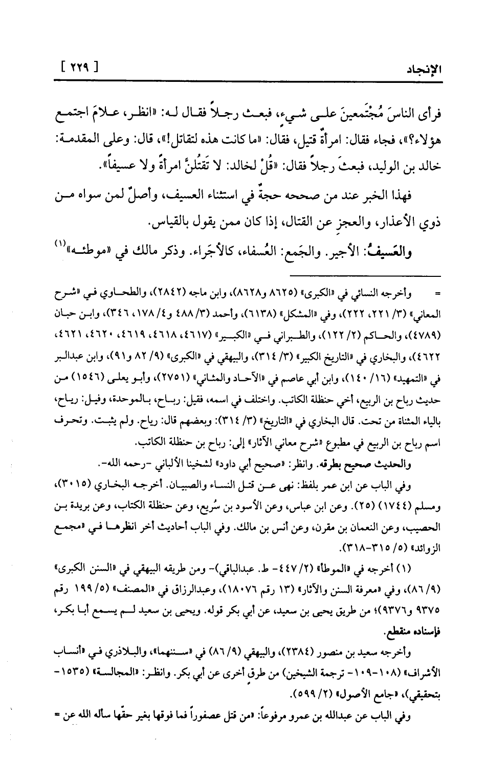 فهذا الخبر عند من صححه حجةٌ في استثناء العسيف، وأصلٌ لمن سواه من ذوي الأعذار، والعجزِ عن القتال، إذا كان ممن يقول بالقياس.
