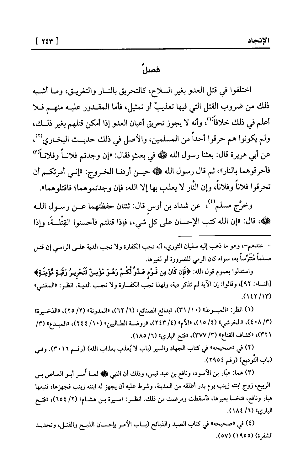 وخرَّج مسلم (¬4) ، عن شداد بن أوسٍ قال: ثنتان حفظتهما عن رسول الله - صلى الله عليه وسلم -، قال: «إن الله كتب الإحسان على كل شيء، فإذا قتلتم فأحسنوا القِتْلةَ، وإذا