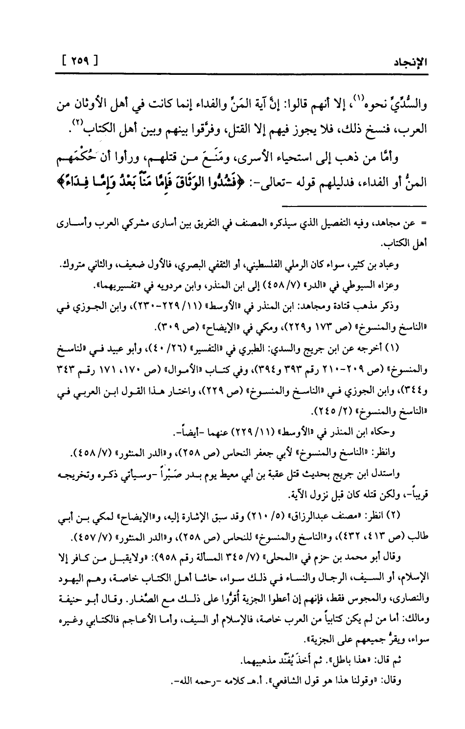 = عن مجاهد، وفيه التفصيل الذي سيذكره المصنف في التفريق بين أسارى مشركي العرب وأسارى أهل الكتاب.