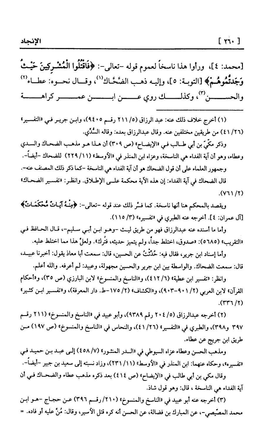 وانظر: «تفسير ابن عطية» (6/412) ، و «الناسخ والمنسوخ» لابن البارزي (ص 35) ، و «أحكام القرآن» لابن العربي (2/901-903) ، و «الكشاف» (2/175-ط. دار المعرفة) ، و «تفسير ابن كثير» (2/336) .