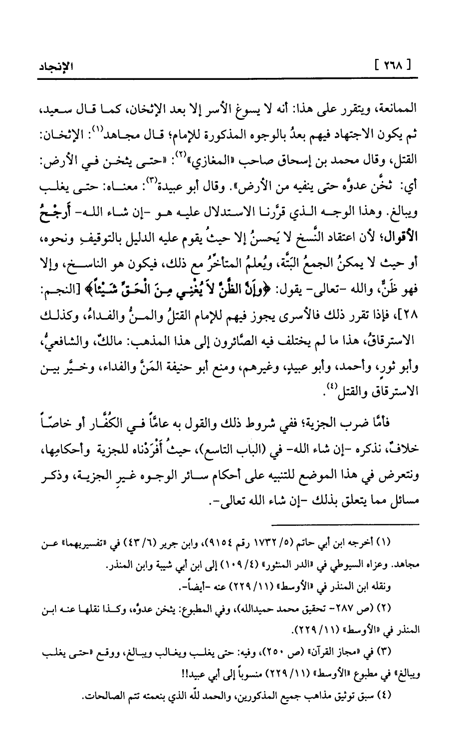 (¬2) (ص 287- تحقيق محمد حميدالله) ، وفي المطبوع: يثخن عدوَّه، وكذا نقلها عنه ابن المنذر في «الأوسط» (11/229) .