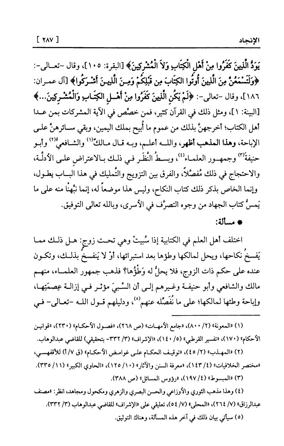 (¬1) «المعونة» (2/800) ، «جامع الأمهات» (ص 268) ، «فصول الأحكام» (230) ، «قوانين الأحكام» (170) ، «تفسير القرطبي» (5/140) ، «الإشراف» (3/332- بتحقيقي) للقاضي عبد الوهاب.