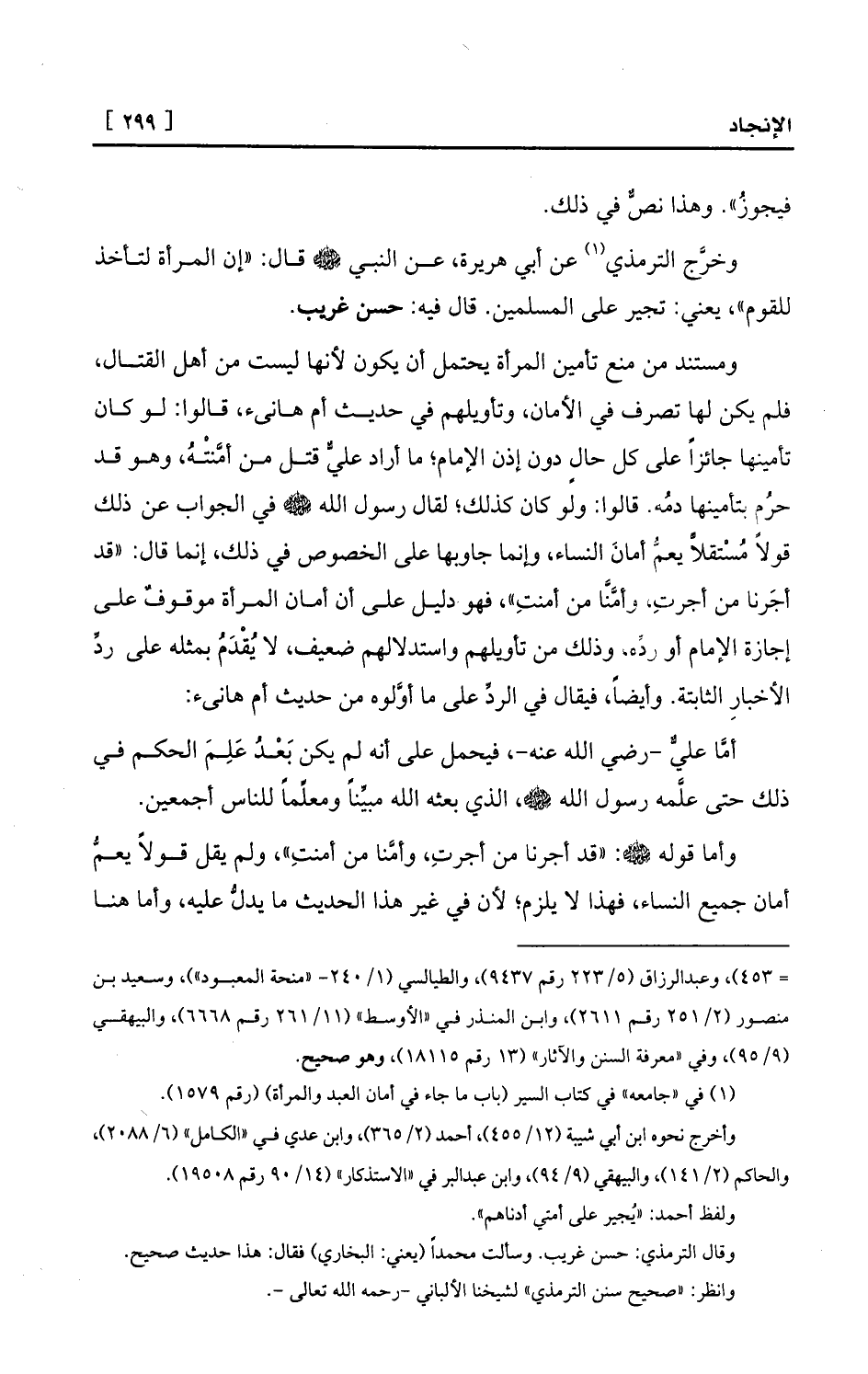 (¬1) في «جامعه» في كتاب السير (باب ما جاء في أمان العبد والمرأة) (رقم 1579) .