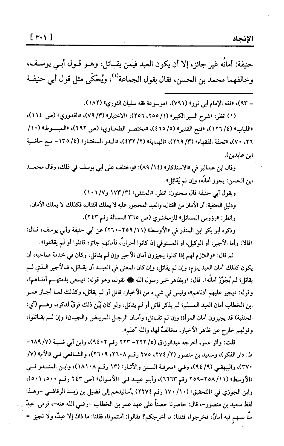 (¬1) انظر: «شرح السير الكبير» (1/255، 256) ، «الاختيار» (3/79) ، «القدوري» (ص 114) ، «اللباب» (4/126) ، «فتح القدير» (5/465) ، «مختصر الطحاوي» (ص 292) ، «المبسوط» (10/ 26، 70) ، «تحفة الفقهاء» (3/269) ، «الهداية» (2/432) ، «الدر المختار» (4/135- مع حاشية ابن عابدين) .