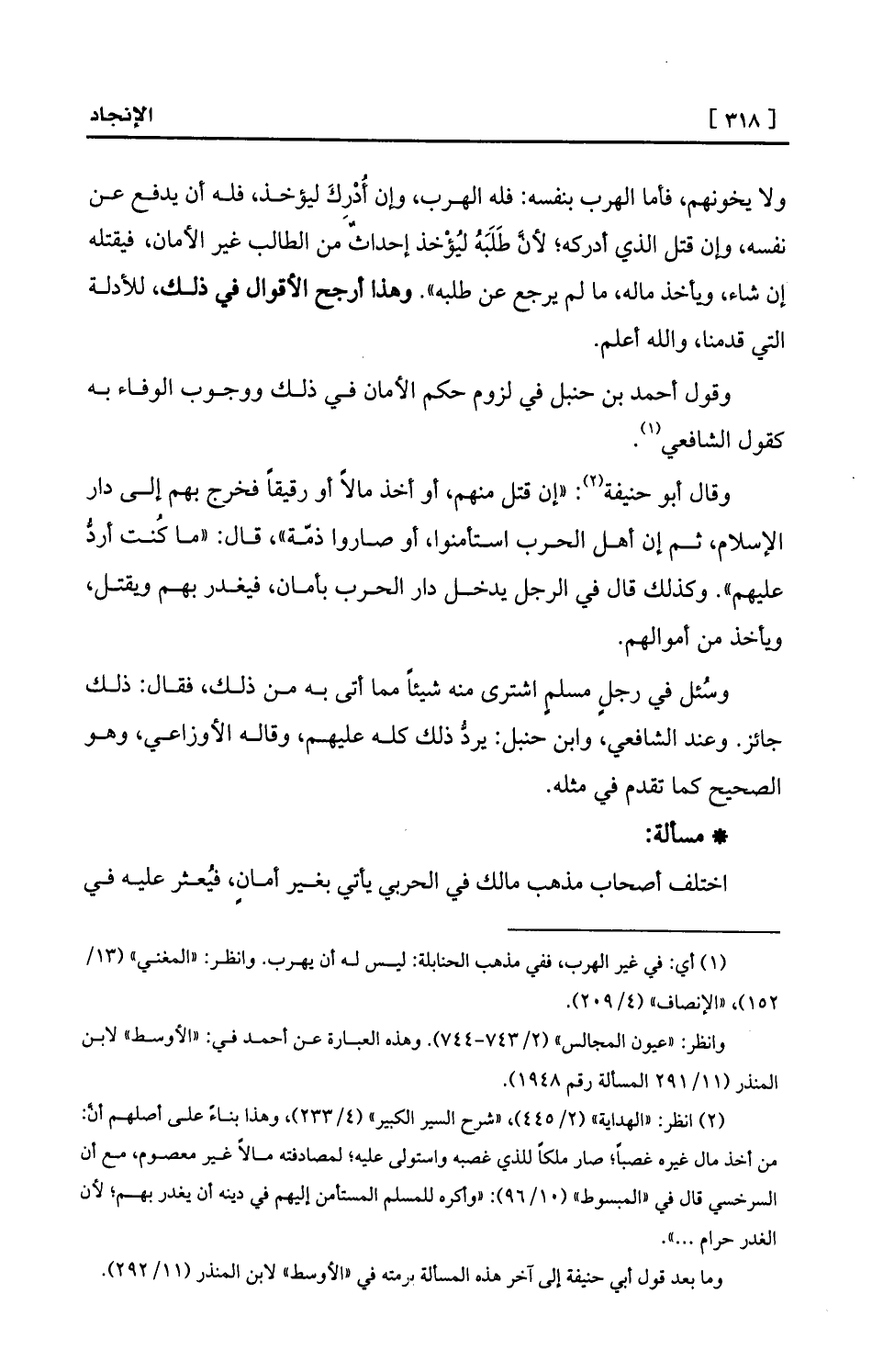 وقول أحمد بن حنبل في لزوم حكم الأمان في ذلك ووجوب الوفاء به كقول الشافعي (¬1) .