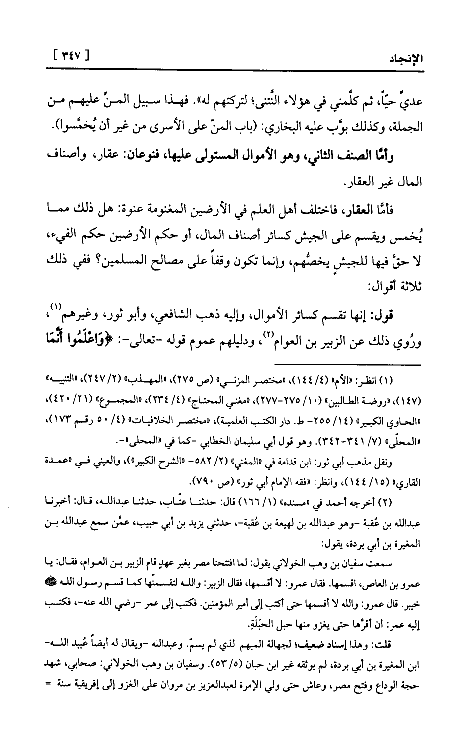 وأمَّا الصنف الثاني، وهو الأموال المستولى عليها، فنوعان: عقار، وأصناف المال غير العقار.