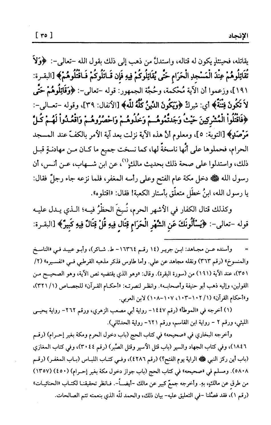 = وأسنده عن مجاهد: ابن جرير (14 رقم 16364- ط. شاكر) ، وأبو عبيد في «الناسخ والمنسوخ» (رقم 363) ونقله مجاهد عن علي. وأما طاوس فذكر مذهبه القرطبي في «تفسيره» (2/ 351) ، عند الآية (191) من (سورة البقرة) . وقال: «وهو الذي يقتضيه نص الآية، وهو الصحيح من القولين، وإليه ذهب أبو حنيفة وأصحابه» . وانظر لنصرته: «أحكام القرآن» للجصاص (1/321) ، و «أحكام القرآن» (1/102-103، 107-108) لابن العربي.