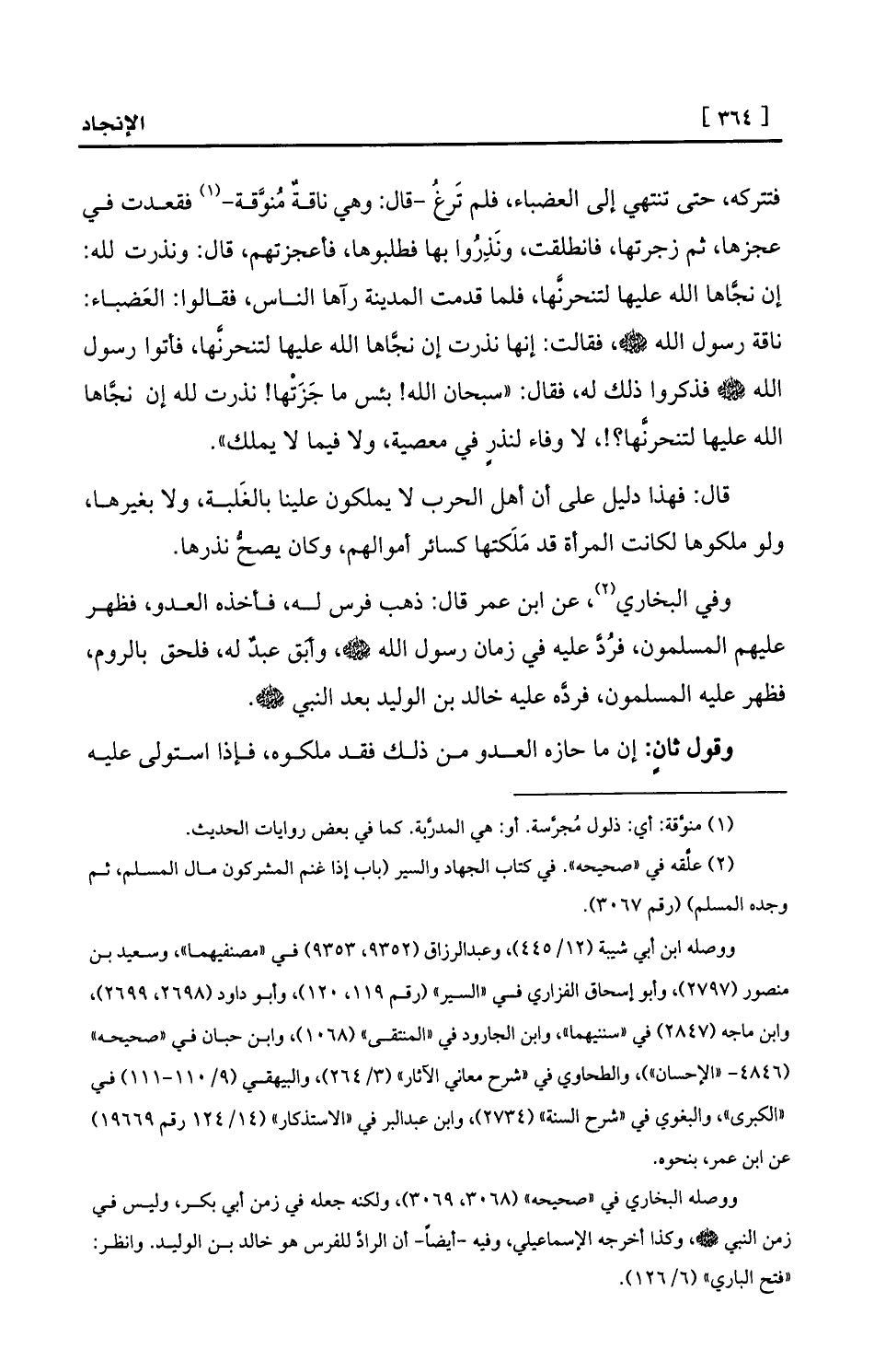 وفي البخاري (¬2) ، عن ابن عمر قال: ذهب فرس له، فأخذه العدو، فظهر عليهم المسلمون، فرُدَّ عليه في زمان رسول الله - صلى الله عليه وسلم -، وأبَق عبدٌ له، فلحق بالروم، فظهر عليه المسلمون، فردَّه عليه خالد بن الوليد بعد النبي - صلى الله عليه وسلم -.
