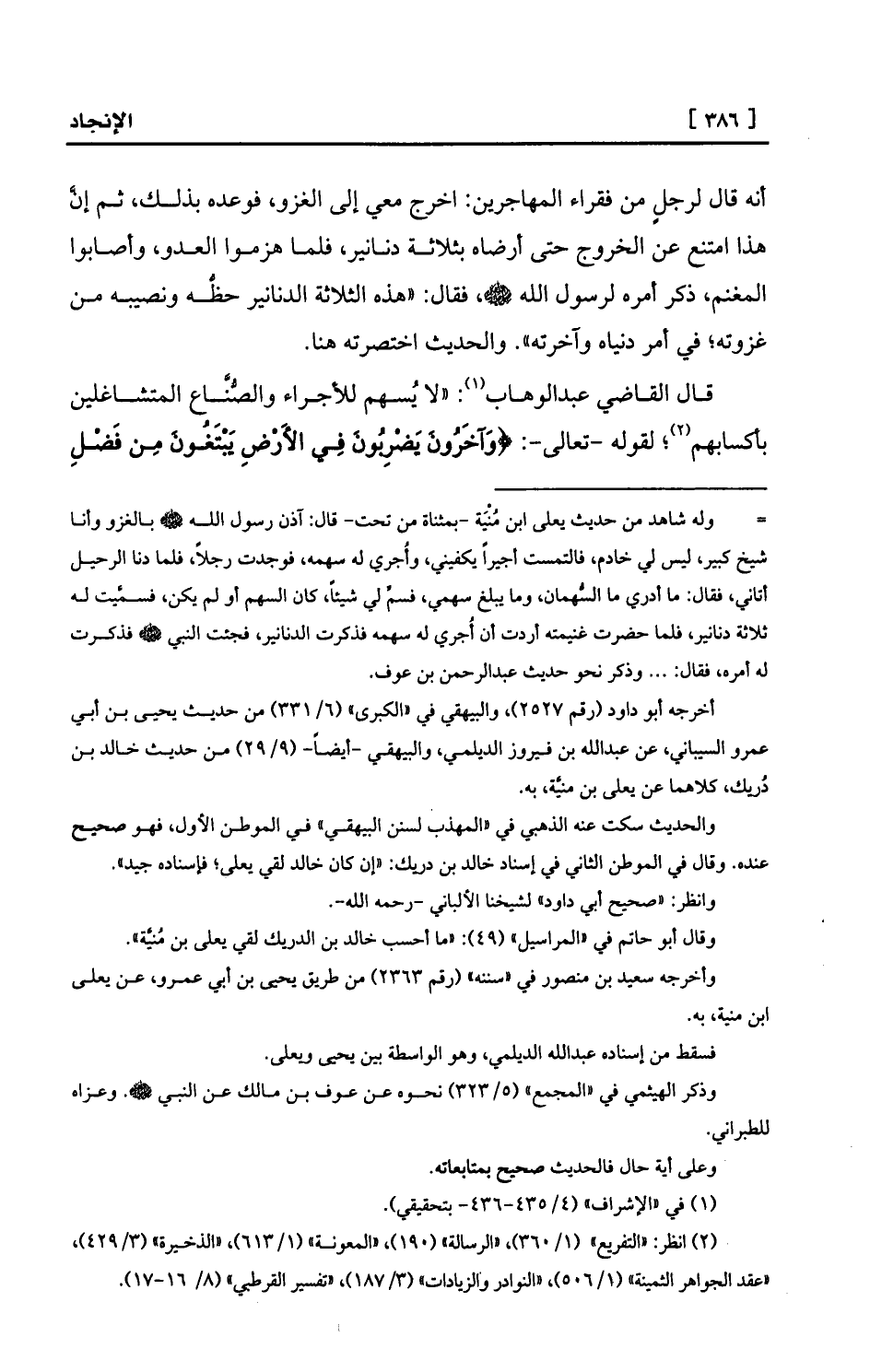 قال القاضي عبد الوهاب (¬1) : «لا يُسهم للأجراء والصُّنَّاع المتشاغلين بأكسابهم (¬2) ؛ لقوله -تعالى-: {وَآخَرُونَ يَضْرِبُونَ فِي الأَرْضِ يَبْتَغُونَ مِن فَضْلِ