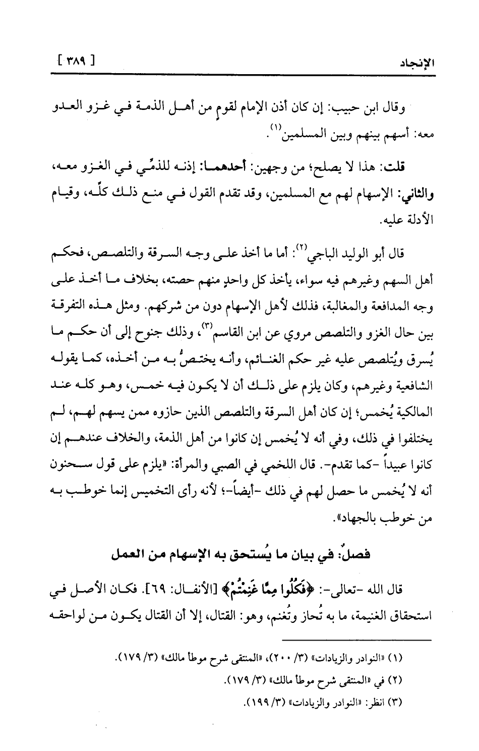 فصلٌ: في بيان ما يُستحق به الإسهام من العمل