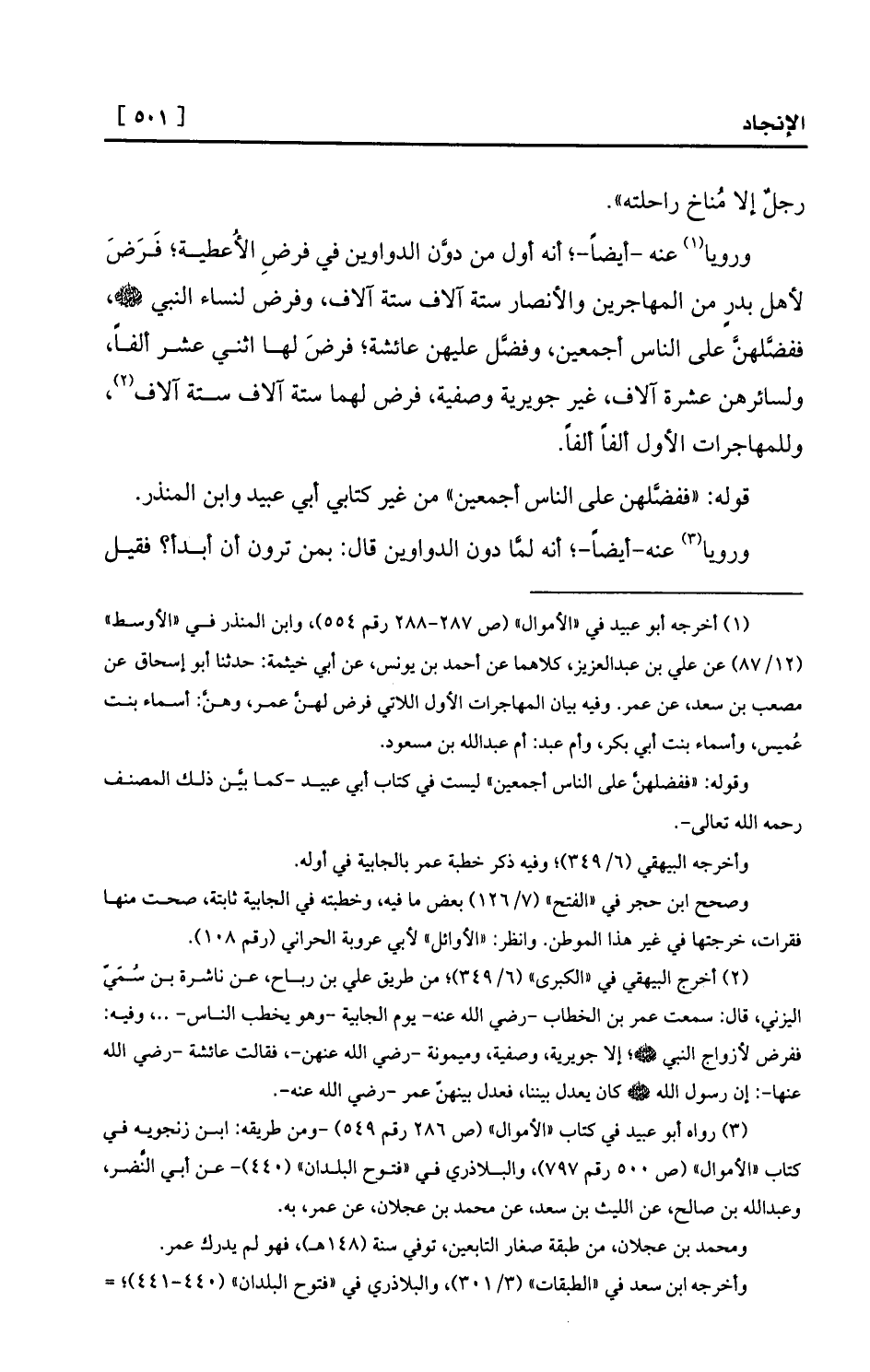 (¬3) رواه أبو عبيد في كتاب «الأموال» (ص 286 رقم 549) -ومن طريقه: ابن زنجويه في كتاب «الأموال» (ص 500 رقم 797) ، والبلاذري في «فتوح البلدان» (440) - عن أبي النَّضر، وعبد الله بن صالح، عن الليث بن سعد، عن محمد بن عجلان، عن عمر، به.