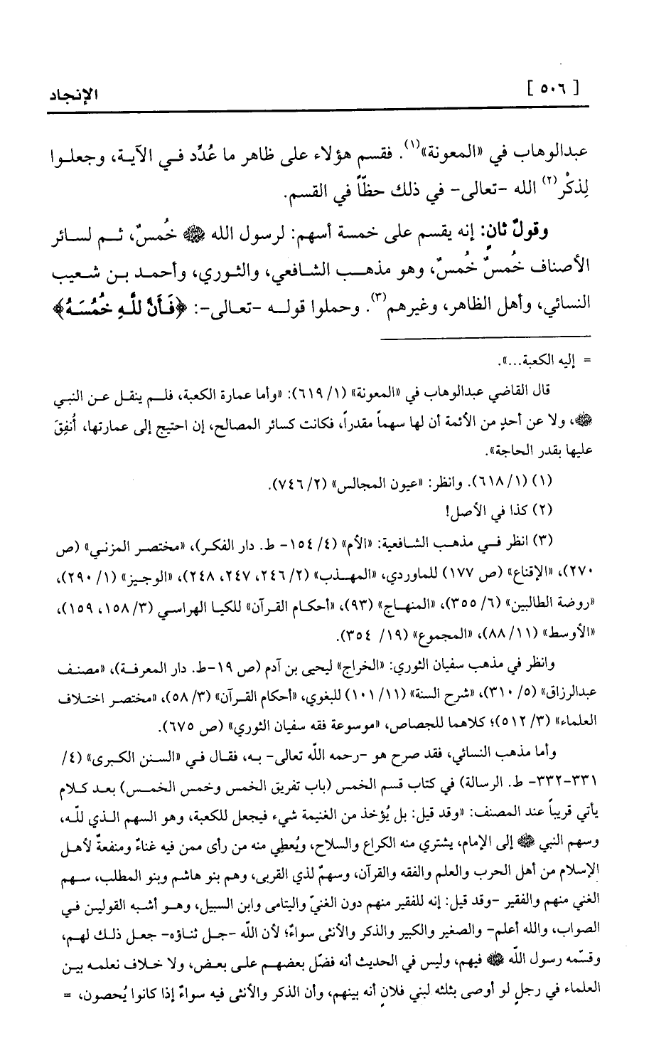 «المعونة» (¬1) . فقسم هؤلاء على ظاهر ما عُدِّد في الآية، وجعلوا لِذكْر (¬2) الله -تعالى- في ذلك حظّاً في القسم.