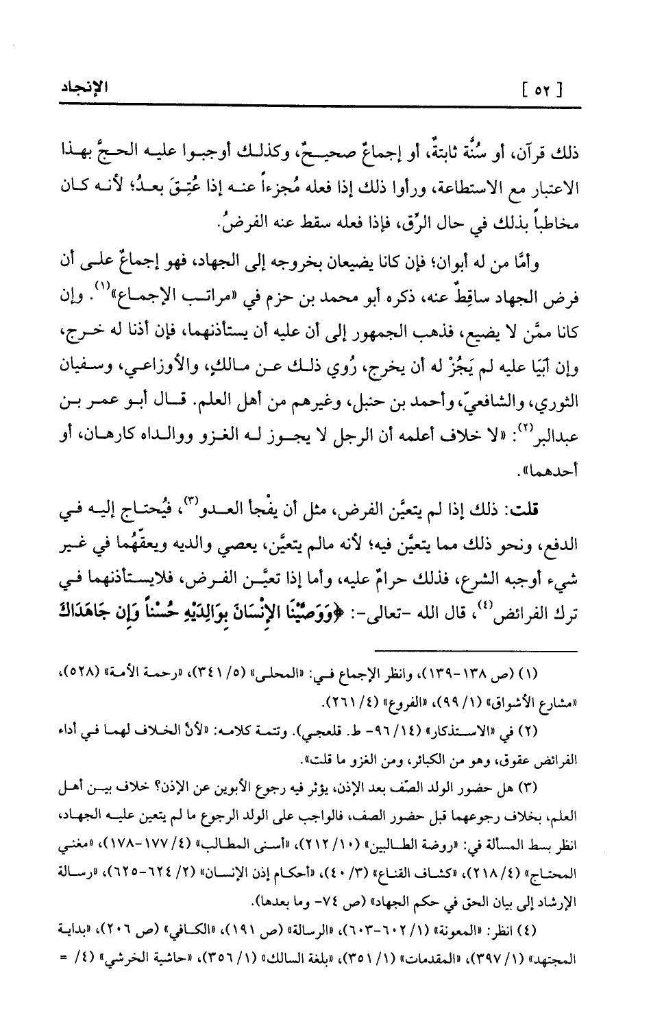 (¬2) في «الاستذكار» (14/96- ط. قلعجي) . وتتمة كلامه: «لأنَّ الخلاف لهما في أداء الفرائض عقوق، وهو من الكبائر، ومن الغزو ما قلت» .